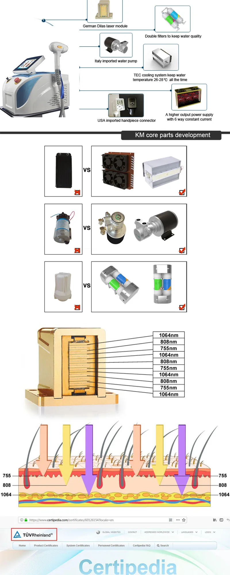 1. 755 808 1064 нм от Alma Technology.2. Для удаления кожи и волос. A3. Эффективно для волосяных фолликул производят накопление тепла, постоянное безболезненное удаление волос.4. Почти не рассеивает кожу, не наносит вреда коже и потным железам, не оставляет шрамов, не оказывает побочного эффекта