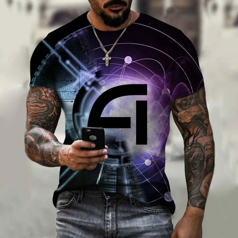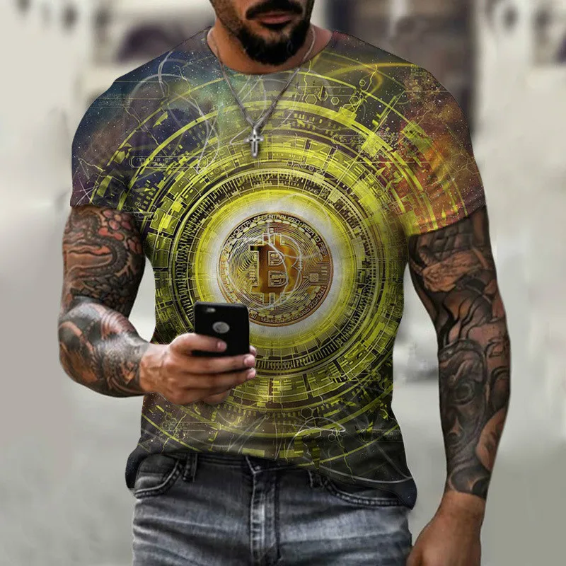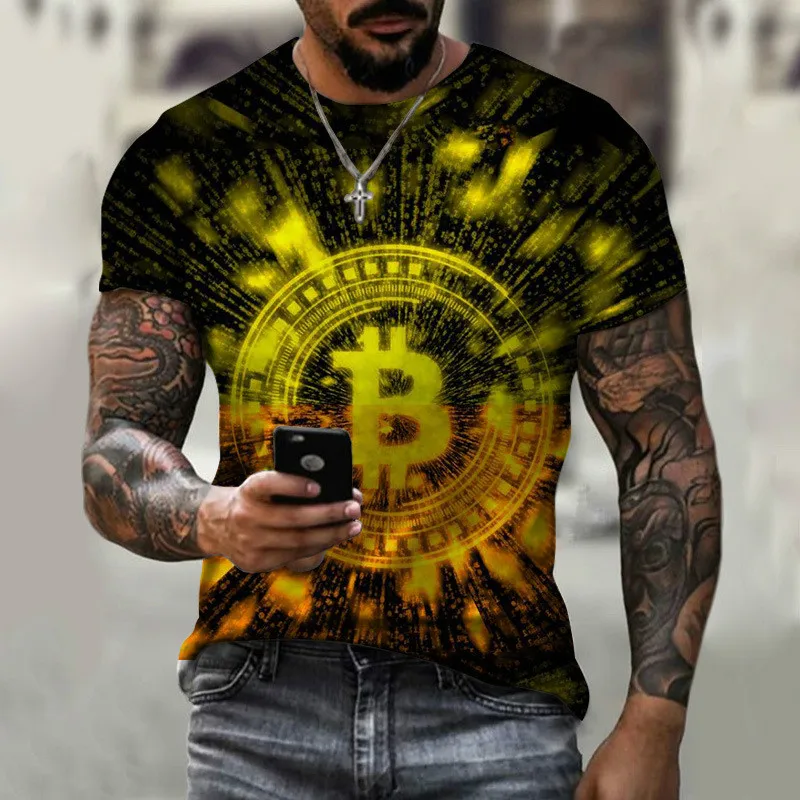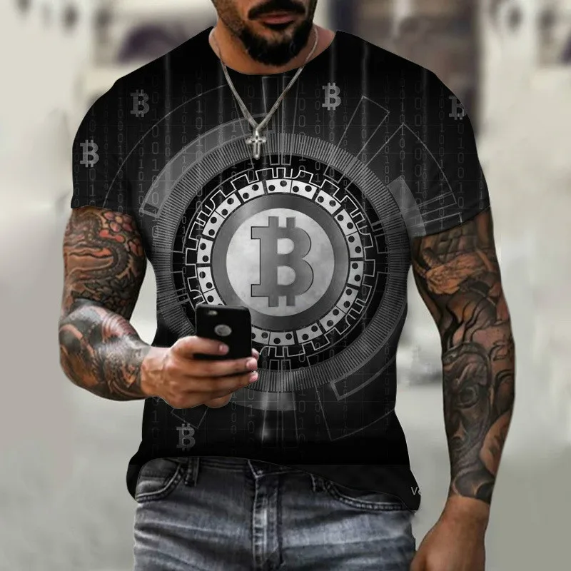 Мужская свободная футболка с коротким рукавом, тонкая водолазка с 3D-принтом биткоина и мужская повседневная футболка в уличном стиле, 2021