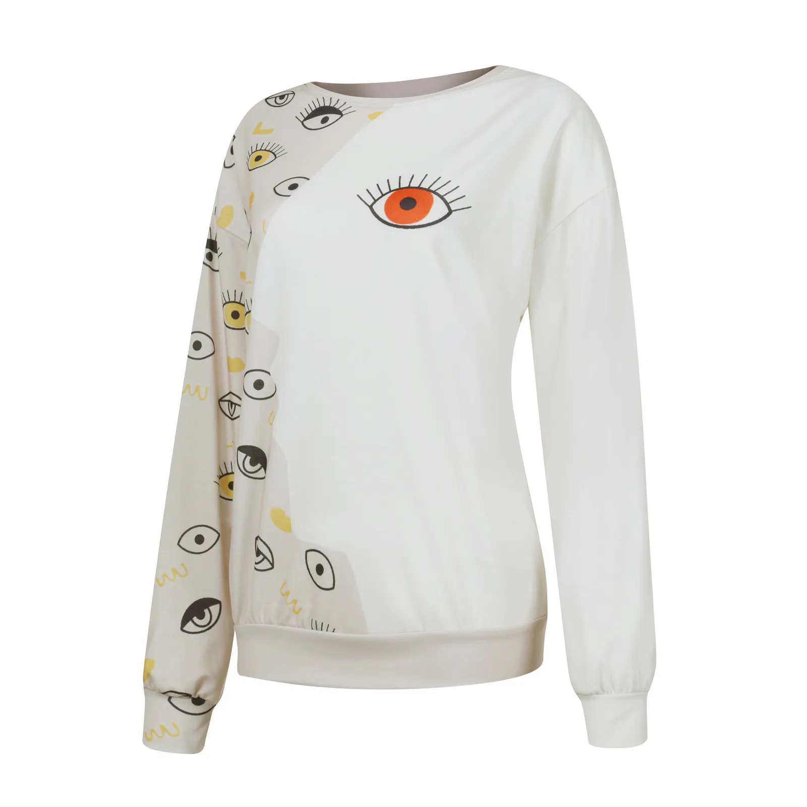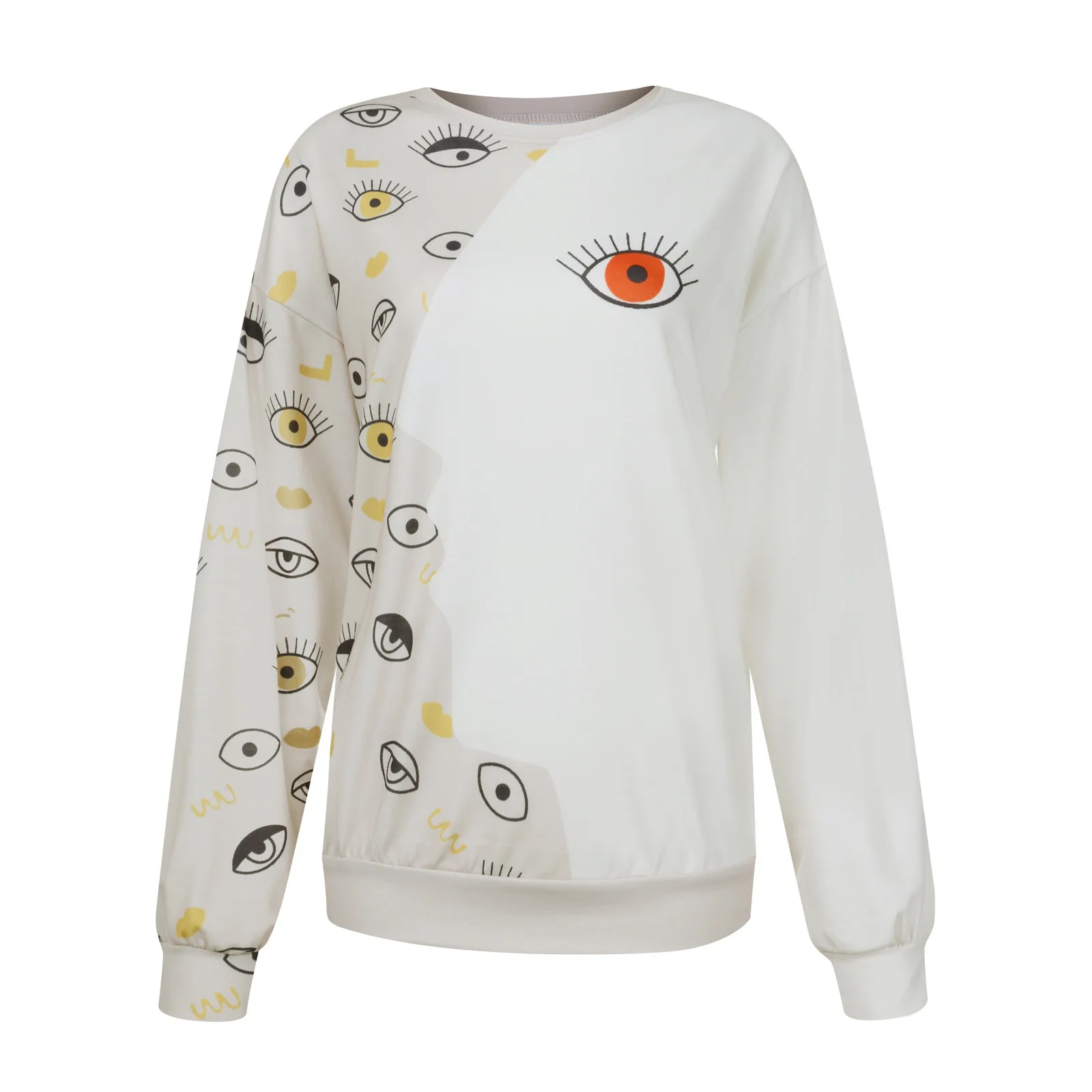 Женская модная Свободная блузка с круглым вырезом и абстрактным принтом в виде глаз, пуловер