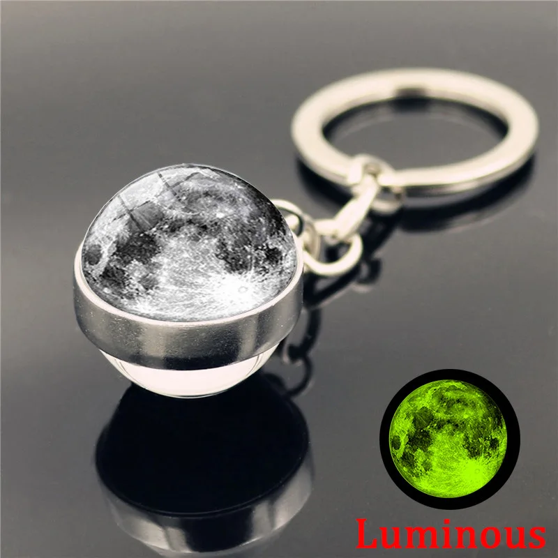 Солнечная система планеты светящаяся цепочка для ключей Кулон Луна двухсторонний стеклянный шар кулон Металлическое кольцо для ключей