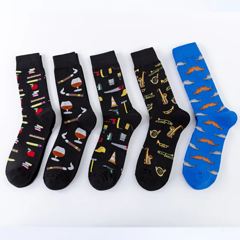Осень-зима, крутые художественные носки, Забавный набор инструментов, винные музыкальные инструменты, уличные носки для бороды, мужские Нескользящие Повседневные Дышащие носки