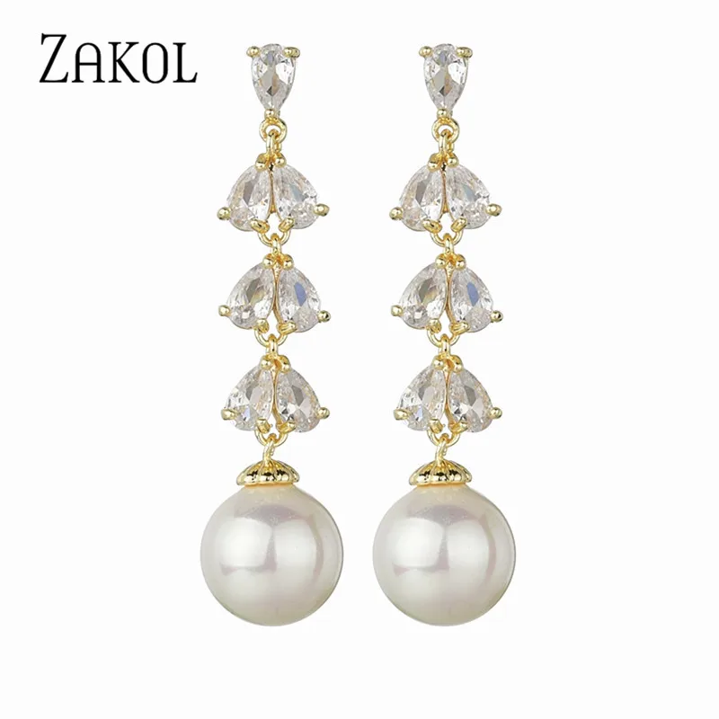 ZAKOL модные высококачественные каплевидные серьги с фианитом и имитацией жемчуга, висячие серьги для женщин, свадебные украшения для вечеринки