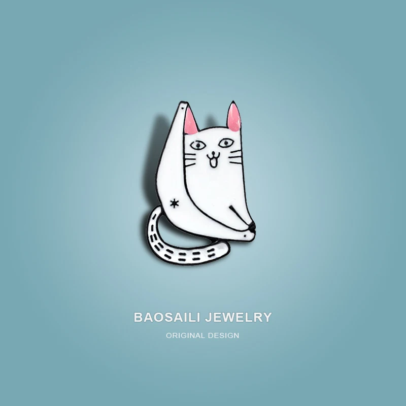 Японская простая и милая стильная креативная брошь в виде кота, аксессуары, разделенная розовая и белая эмалированная брошь в виде кошки, значок