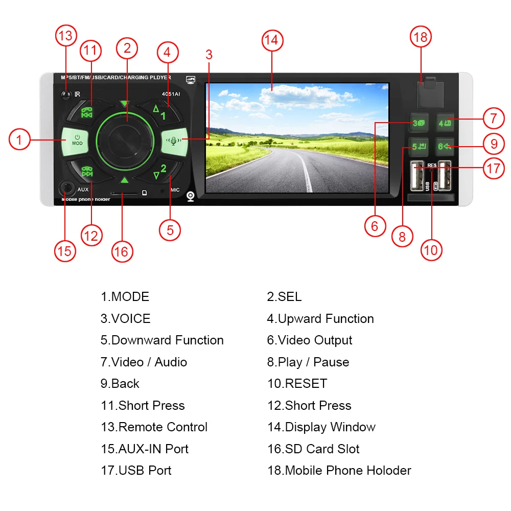 1x4,1 дюймов цифровой Экран автомобильный радиоприемник