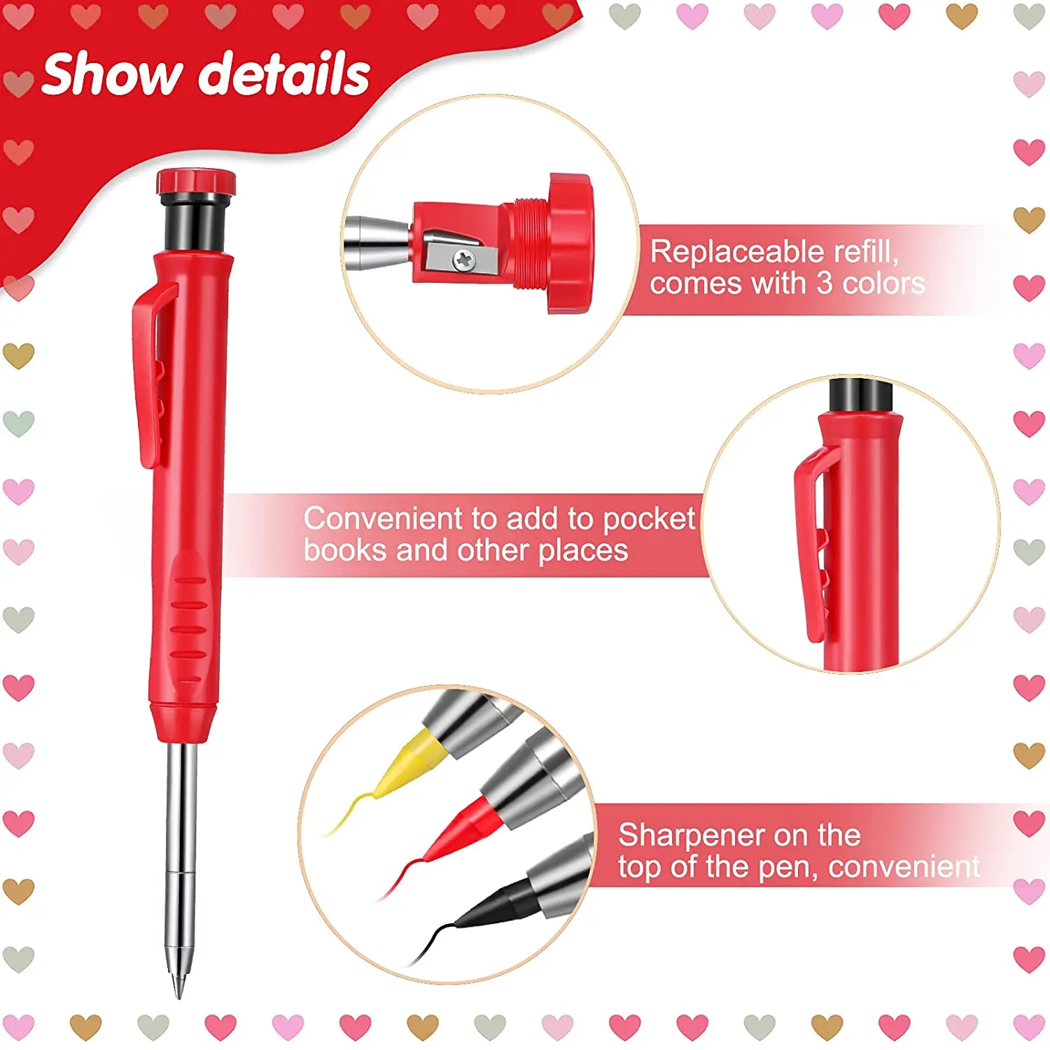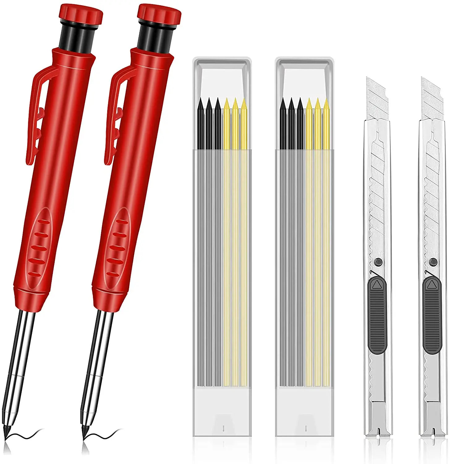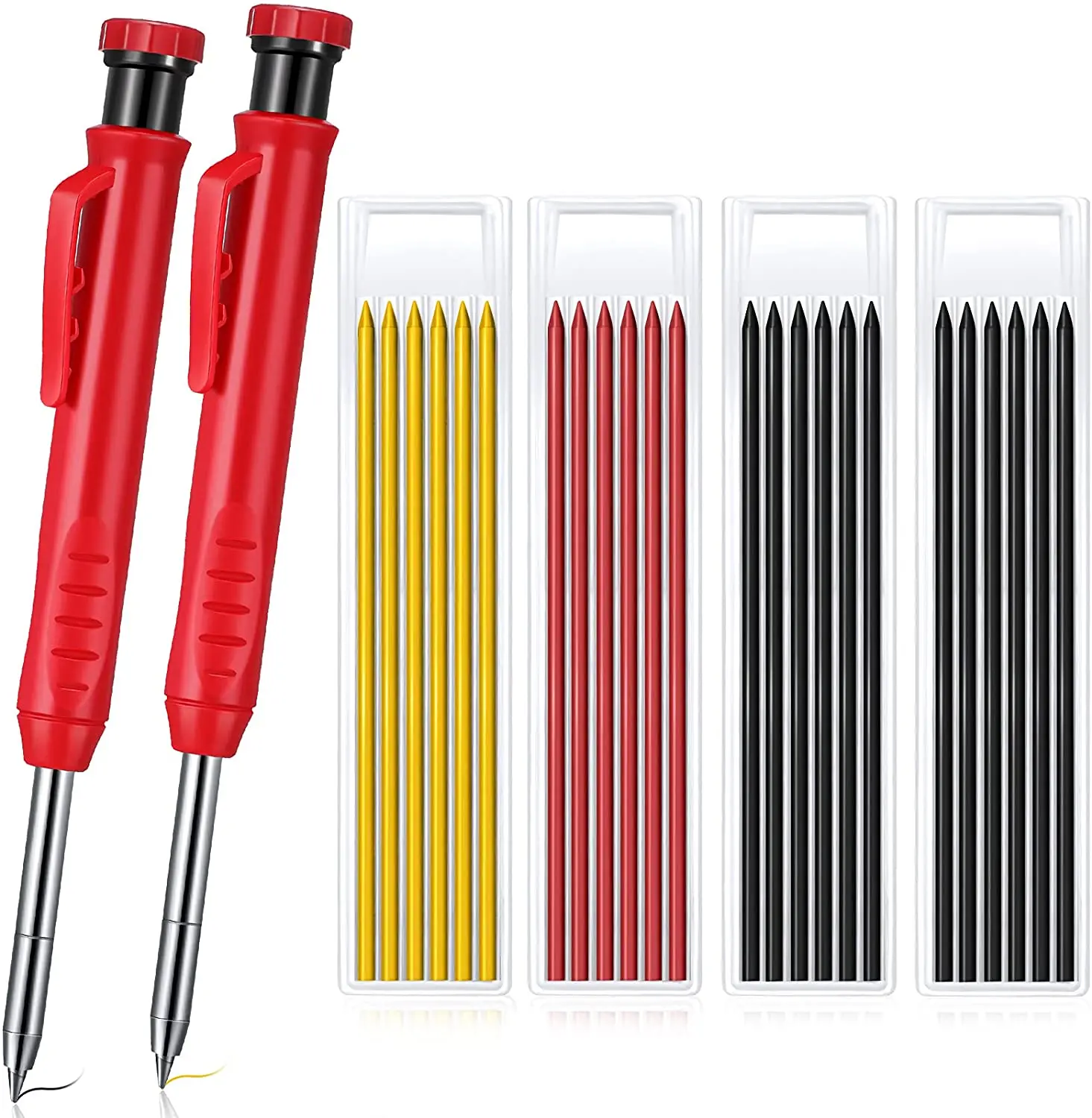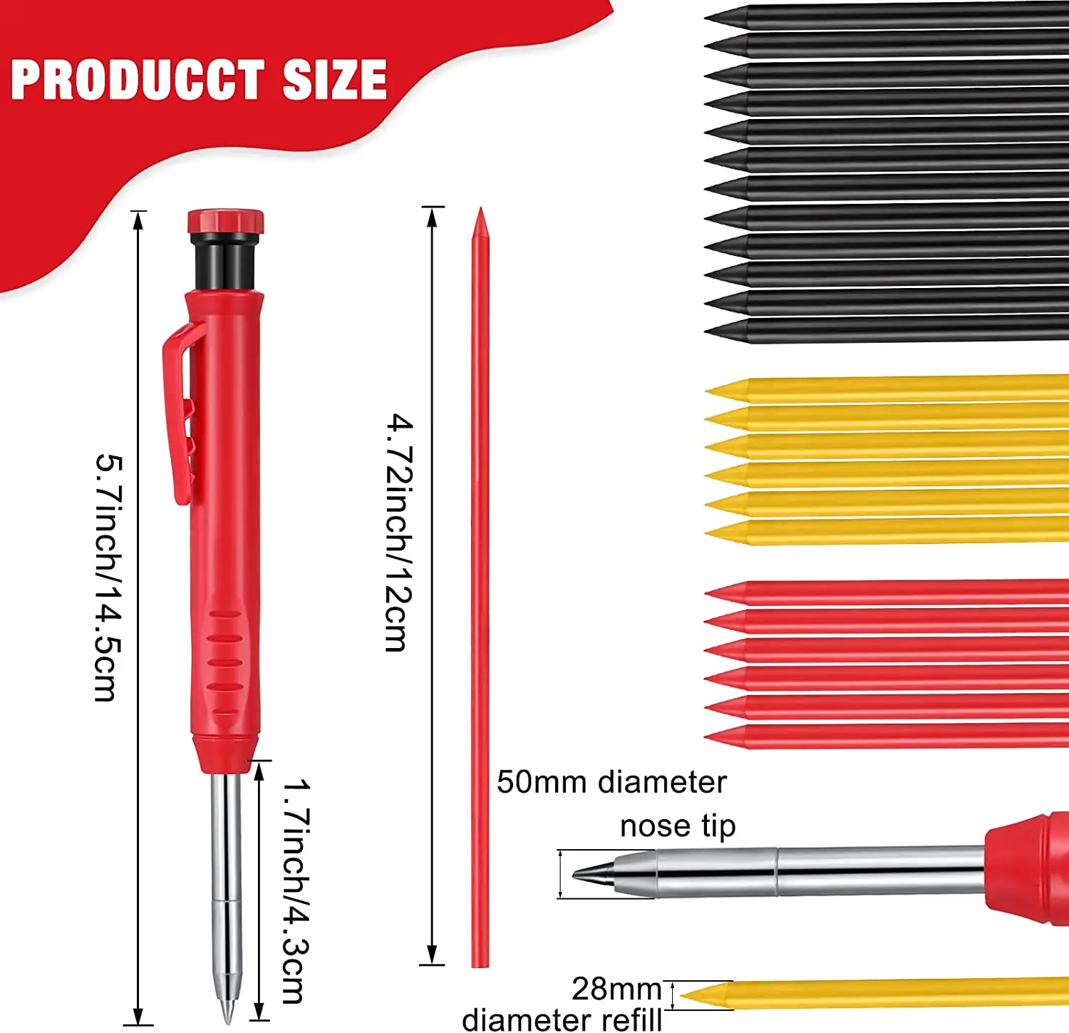 2,8 мм толщиной и 12 см в длину Заправка может быть очень жесткие и больше подходит для строительства, таким образом, вам не нужно беспокоиться о том, что ручка с заправляемым стержнем и не сломается. В 14,5 см маркировочный карандаш в красном цвете является достаточно долго для входа в глубоких отверстий для рисования.