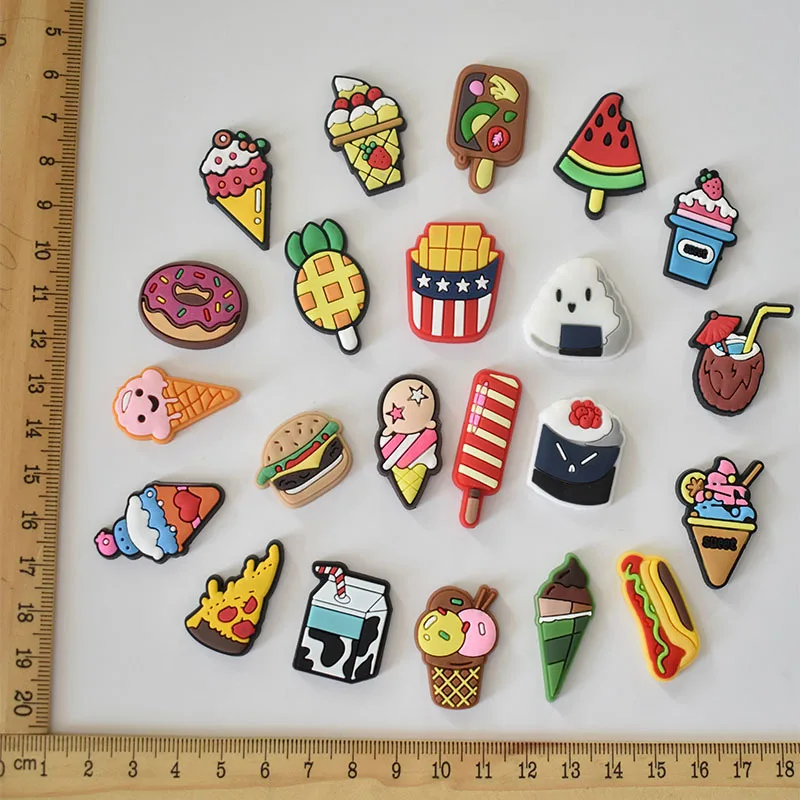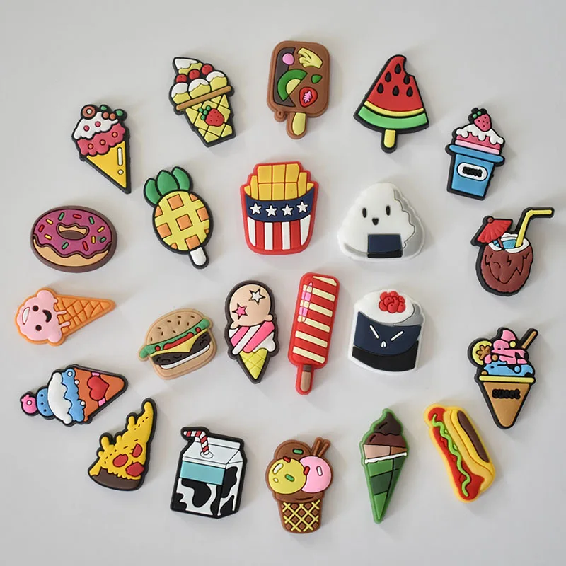 Croc шармы, дизайнерские Мультяшные цветы с едой, Съемная мягкая клейкая Пряжка для обуви, декоративное украшение, индивидуальный шарм для обуви