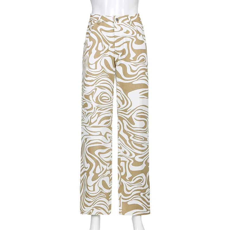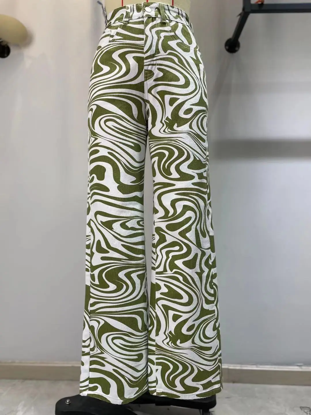 Брюки женские хлопковые с принтом зебры, прямые повседневные штаны со средней талией, модные длинные брюки, новый стиль, весна-лето 2021