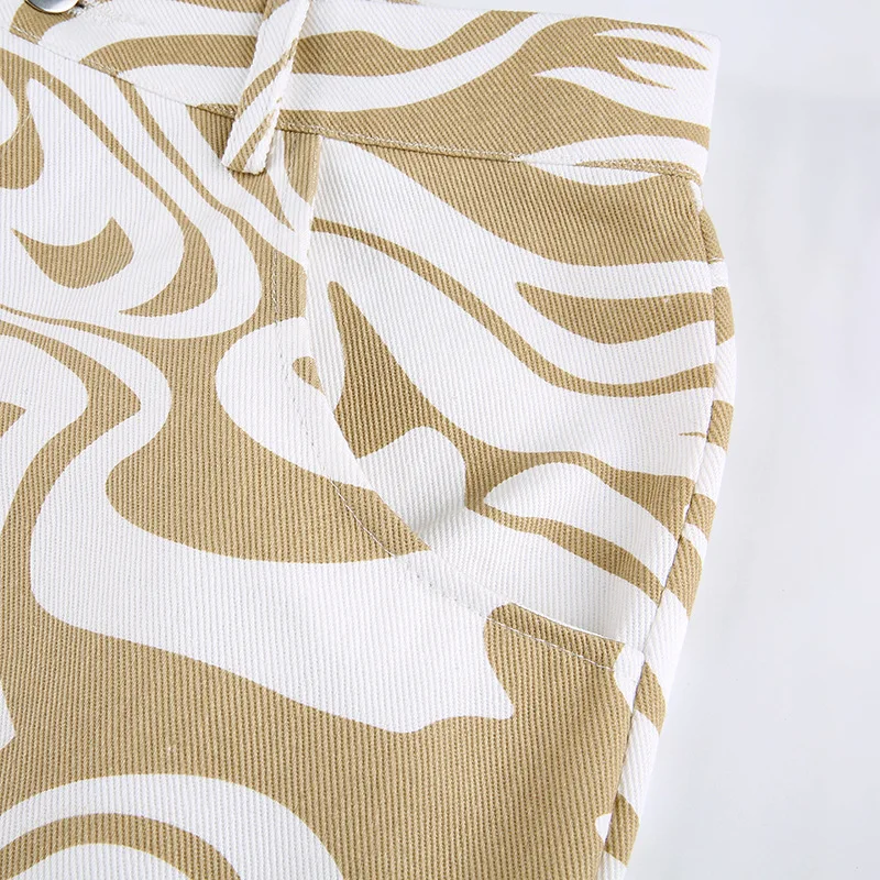 Женские джинсы с принтом зебры, коричневые повседневные винтажные п...