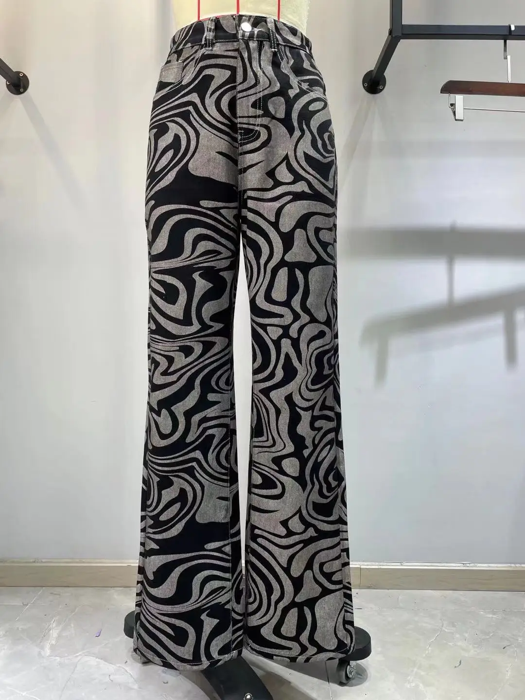 Джинсы женские в полоску, винтажная уличная одежда из денима с прин...
