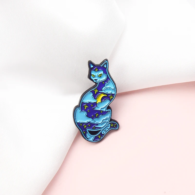Эмалированная заколка без волос с изображением кота звездного неба,...
