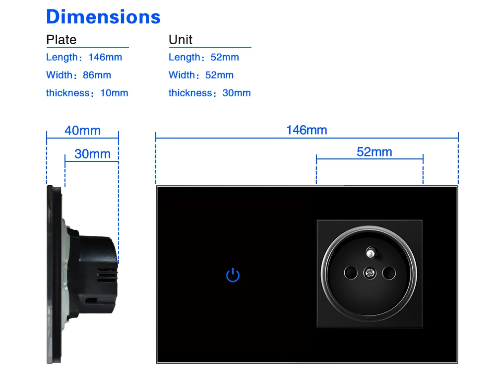 Размер панели: 146*86*10 ммСтандарт гнезда: немецкий стандарт