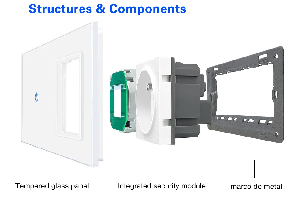 Разъем и переключатель панели из закаленного стеклаРозетка и разъем usbКомбинация гнезда слабого токаСенсорный выключатель с одним проводом433 беспроводной пульт дистанционного управленияTuya app wifi smart switch