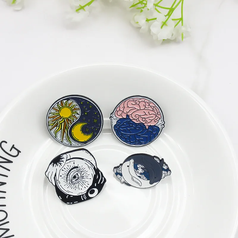 Солнце и луна мозги Дельфин руки Инь и Ян держать восемь диаграмм Моделирование серии сплав брошь значок ювелирные изделия булавки Металл для спины