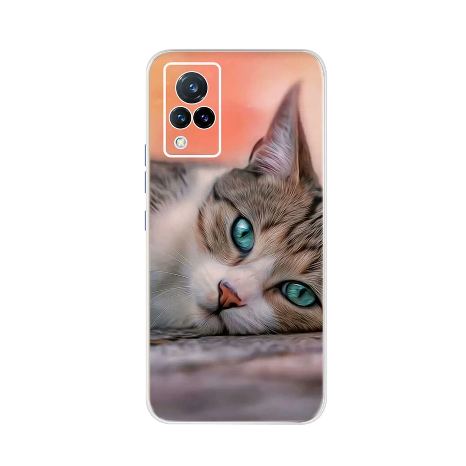 Мягкий силиконовый матовый чехол из ТПУ для телефона Vivo V21 V2066, чехол с полной защитой, задний Чехол для Vivo V2066 v 21 Чехлы бамперы с милым котом