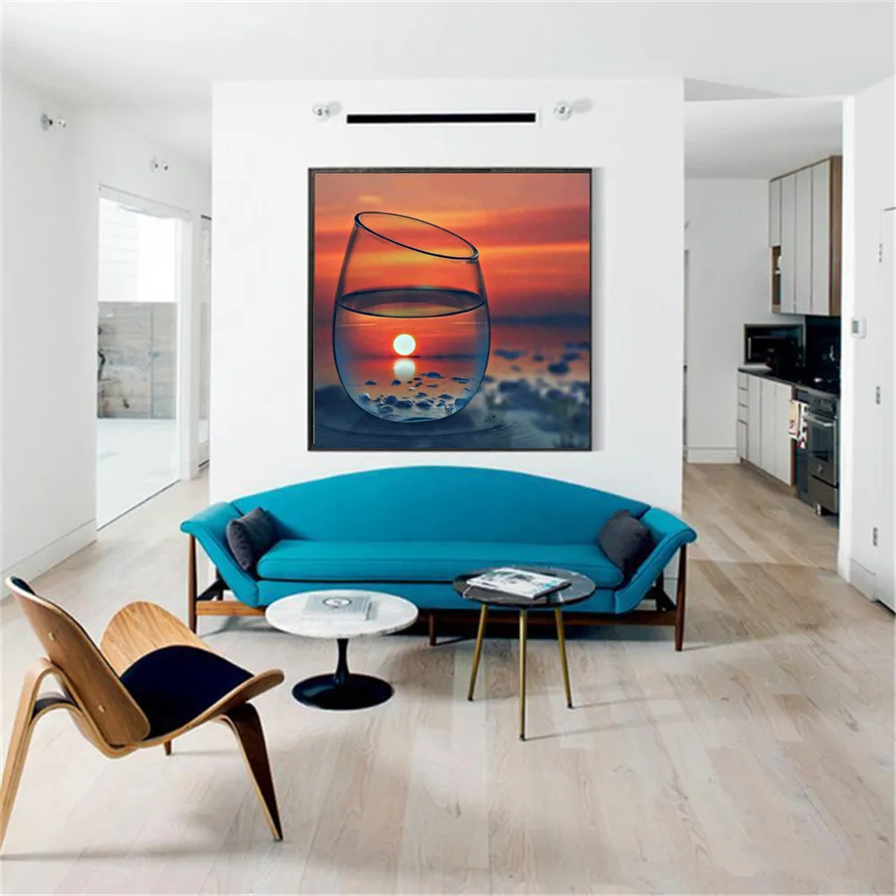 Алмазная живопись, закат, пейзаж, настенный постер, вышивка, полная...