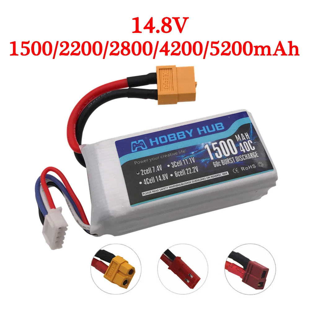 Аккумулятор Lipo 4S 14,8 в 40C 1500 мАч2200 мАч2800 мАч4200 мАч5200 мАч для радиоуправляемых вертолетов, игрушек, автомобилей, лодок, дронов, запчасти XT60TJST, штепсельная вилка