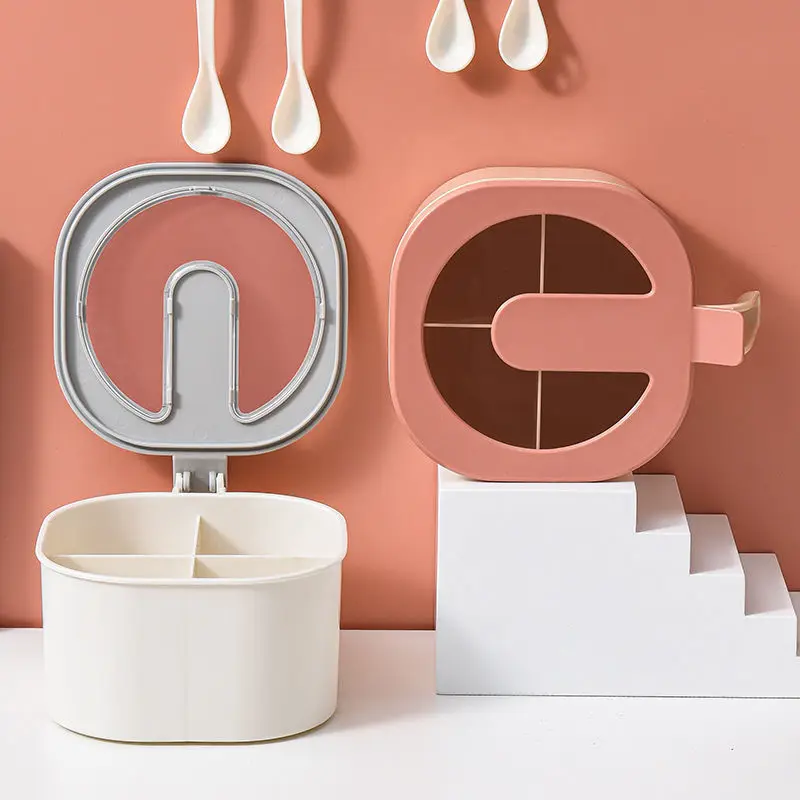 Бытовой Кухонный Контейнер 4 в 1 с четырьмя отсеками для приправ и ложек, пластиковый контейнер для хранения