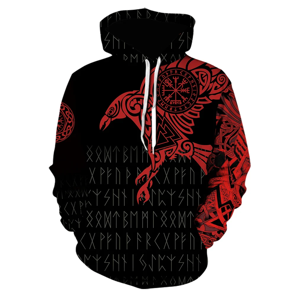 Толстовка мужская с капюшоном и 3D-принтом, в стиле викингов, полин...
