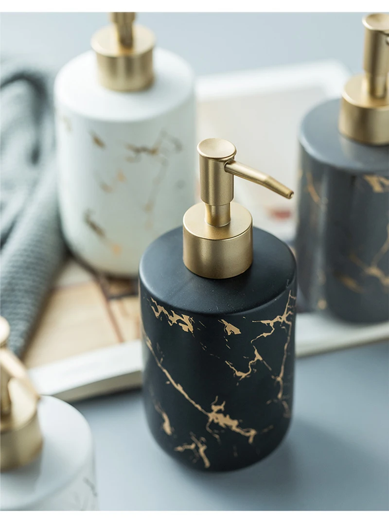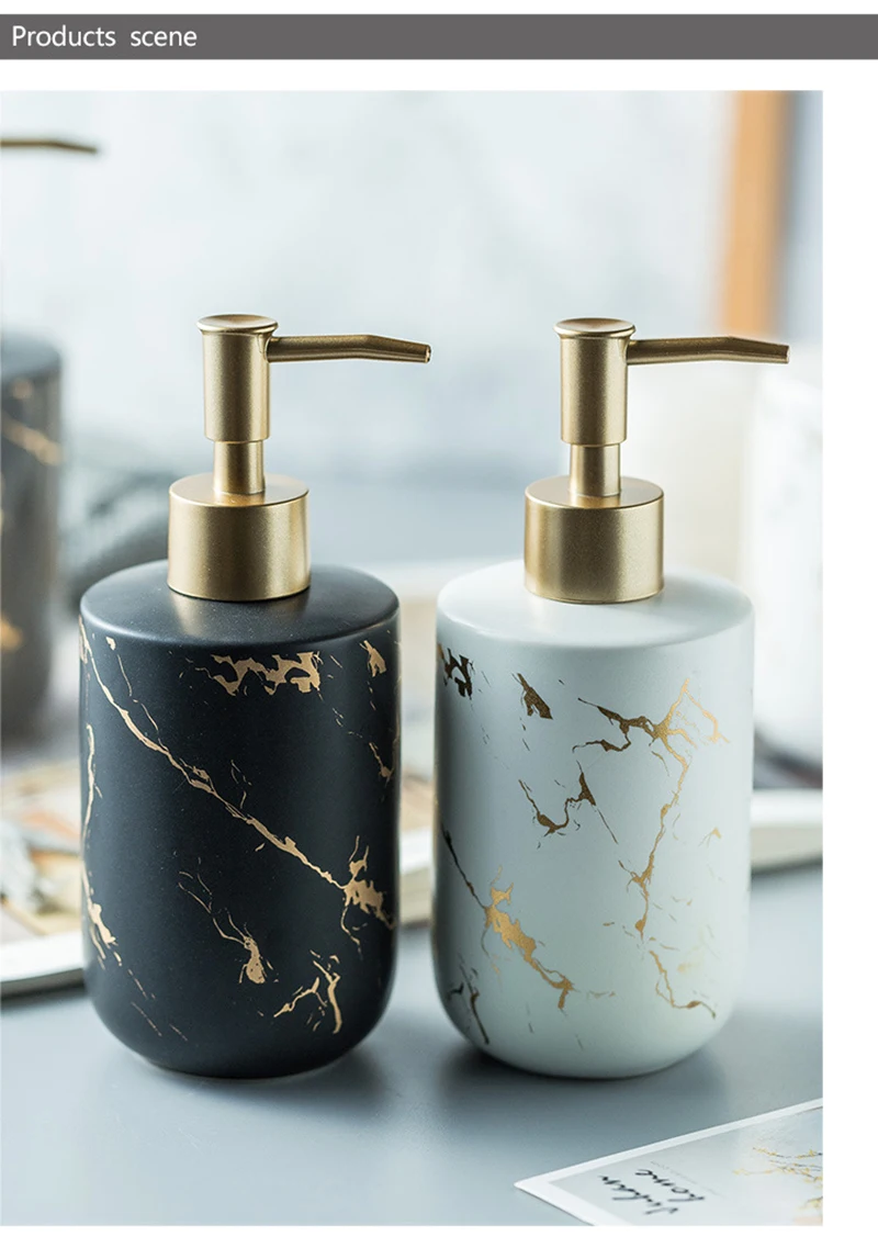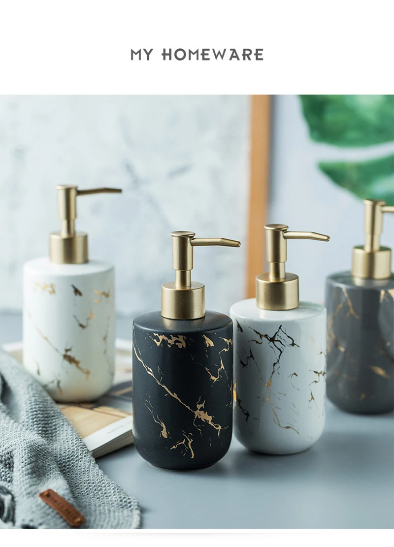 Набор керамических бутылок для мыла и лосьона, золотистые мраморные фарфоровые туалетные принадлежности, аксессуары для украшения ванной комнаты, пуш-тип