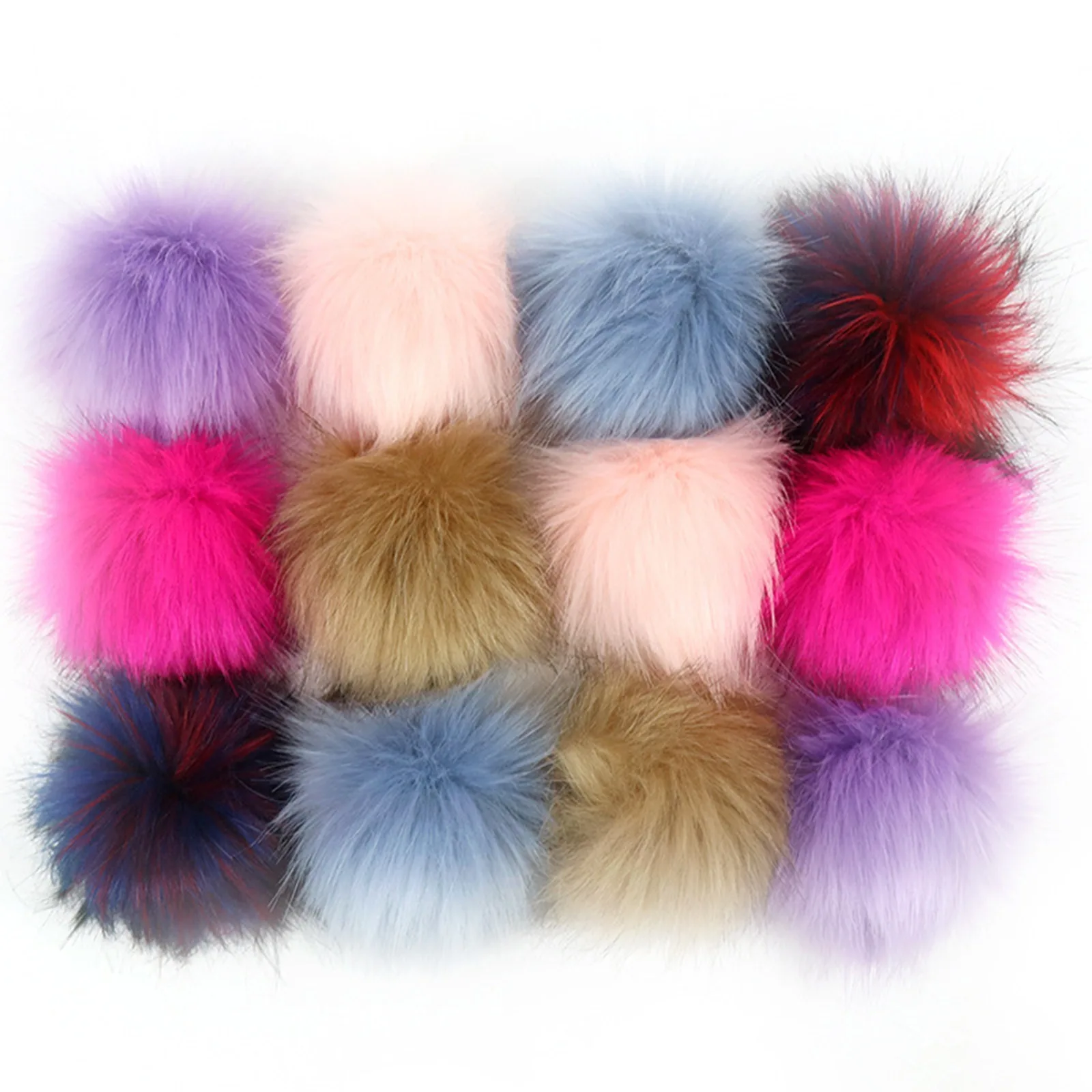 12 шт., разноцветные шапки-Помпоны из искусственного лисьего меха, ...