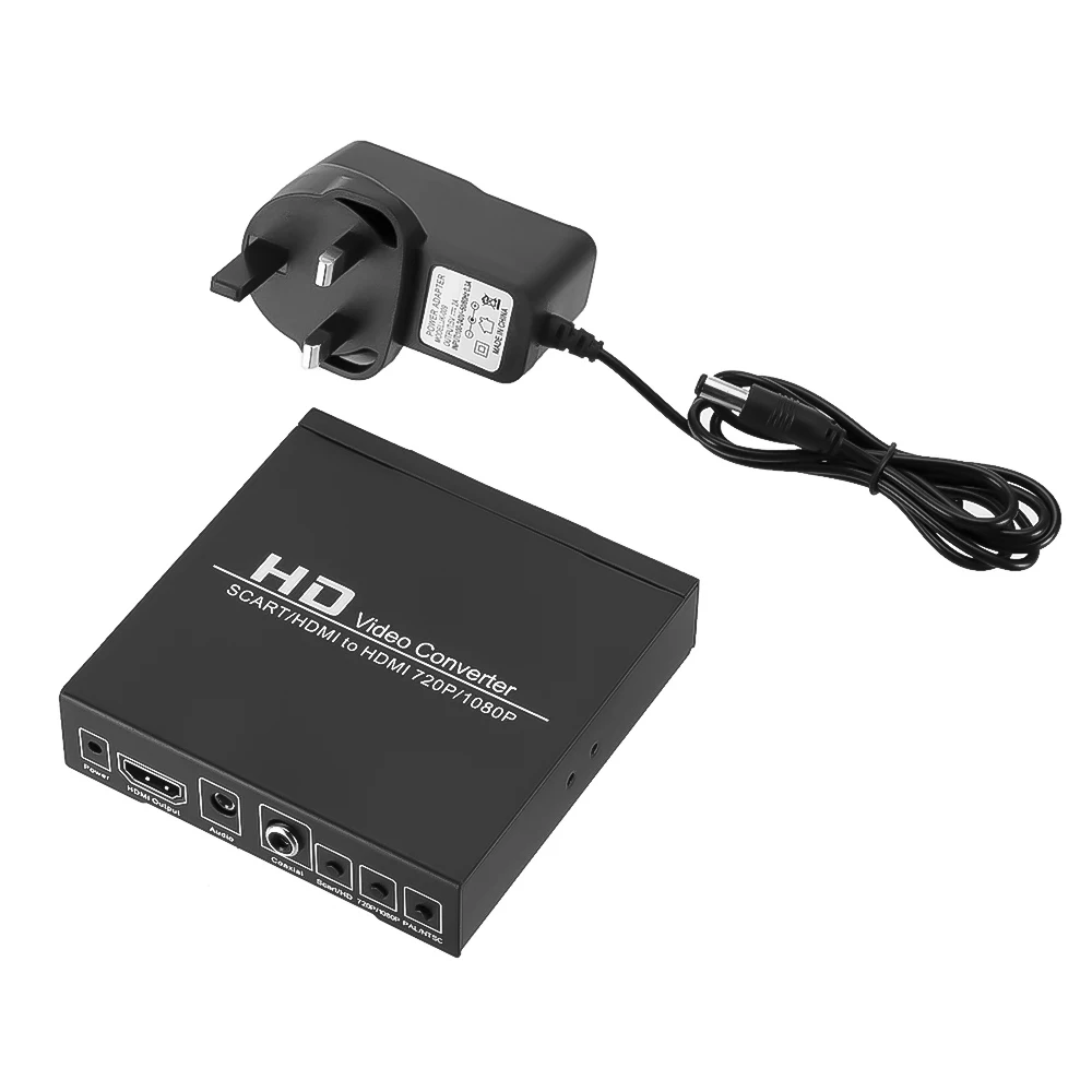 Новый цифровой преобразователь Full HD 1080P, преобразователь видео высокой четкости SCART в HDMI-совместимый адаптер питания с Европейскойамериканской вилкой для HDTV HD