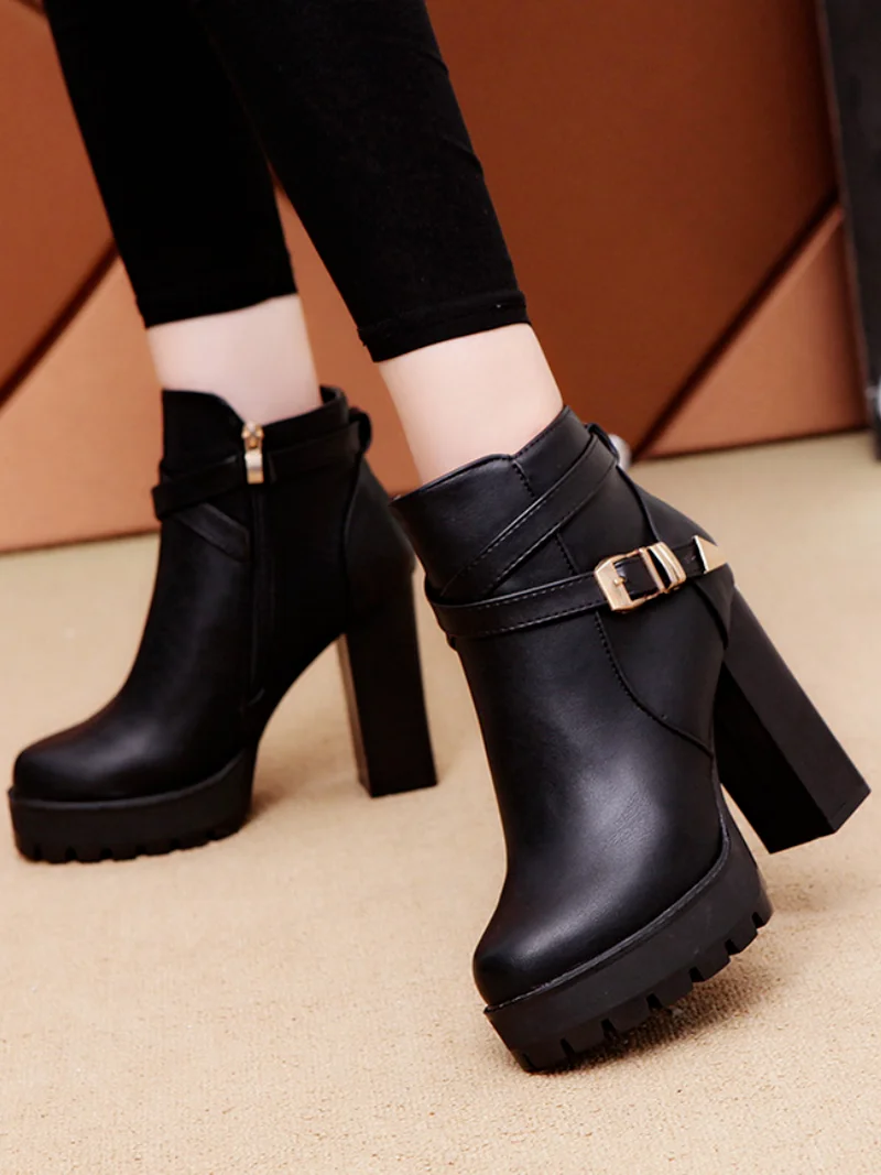 Женские ботильоны на платформе и высоком каблуке, кожаные ботинки с круглым носком и застежкой-молнией, Осень-зима 2021