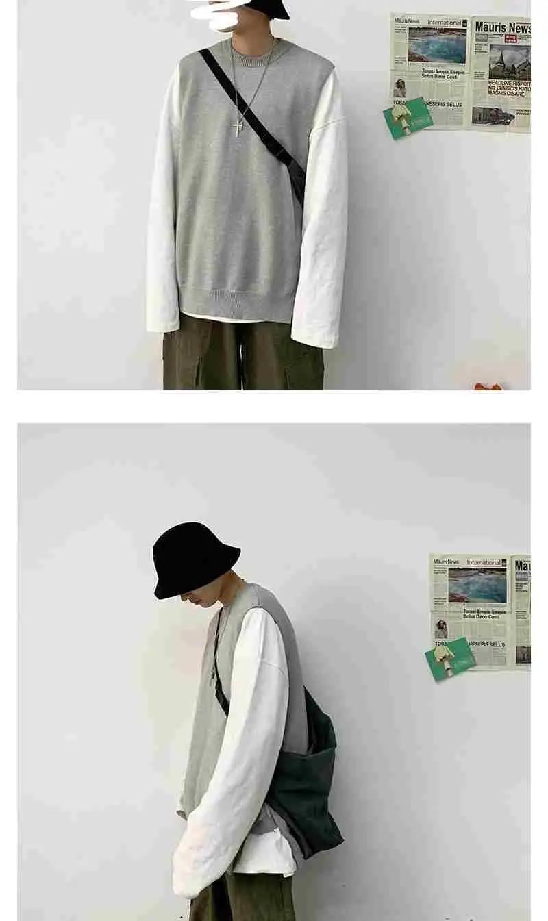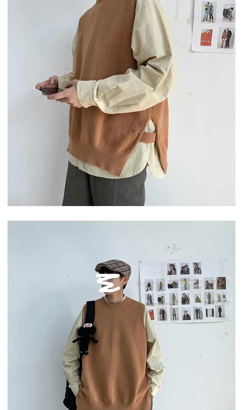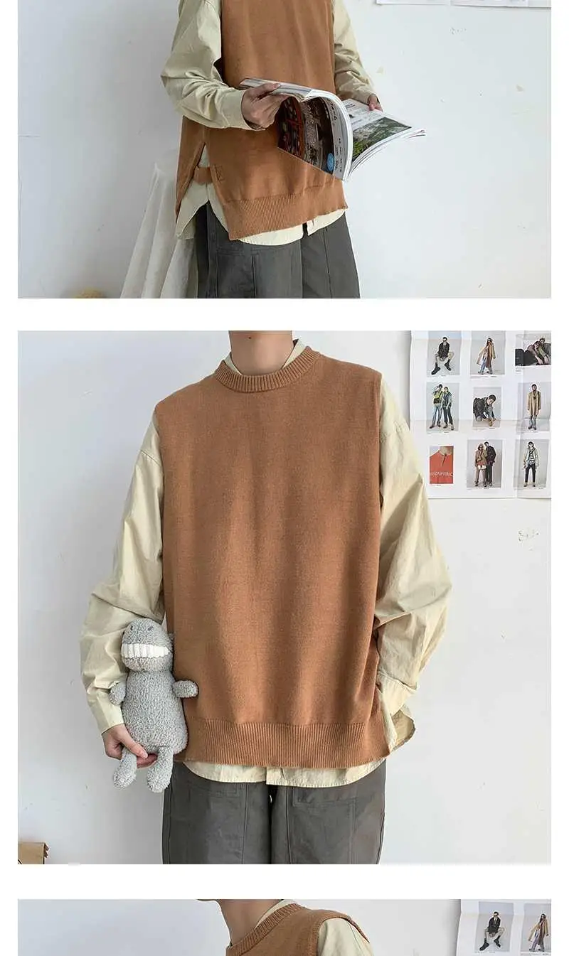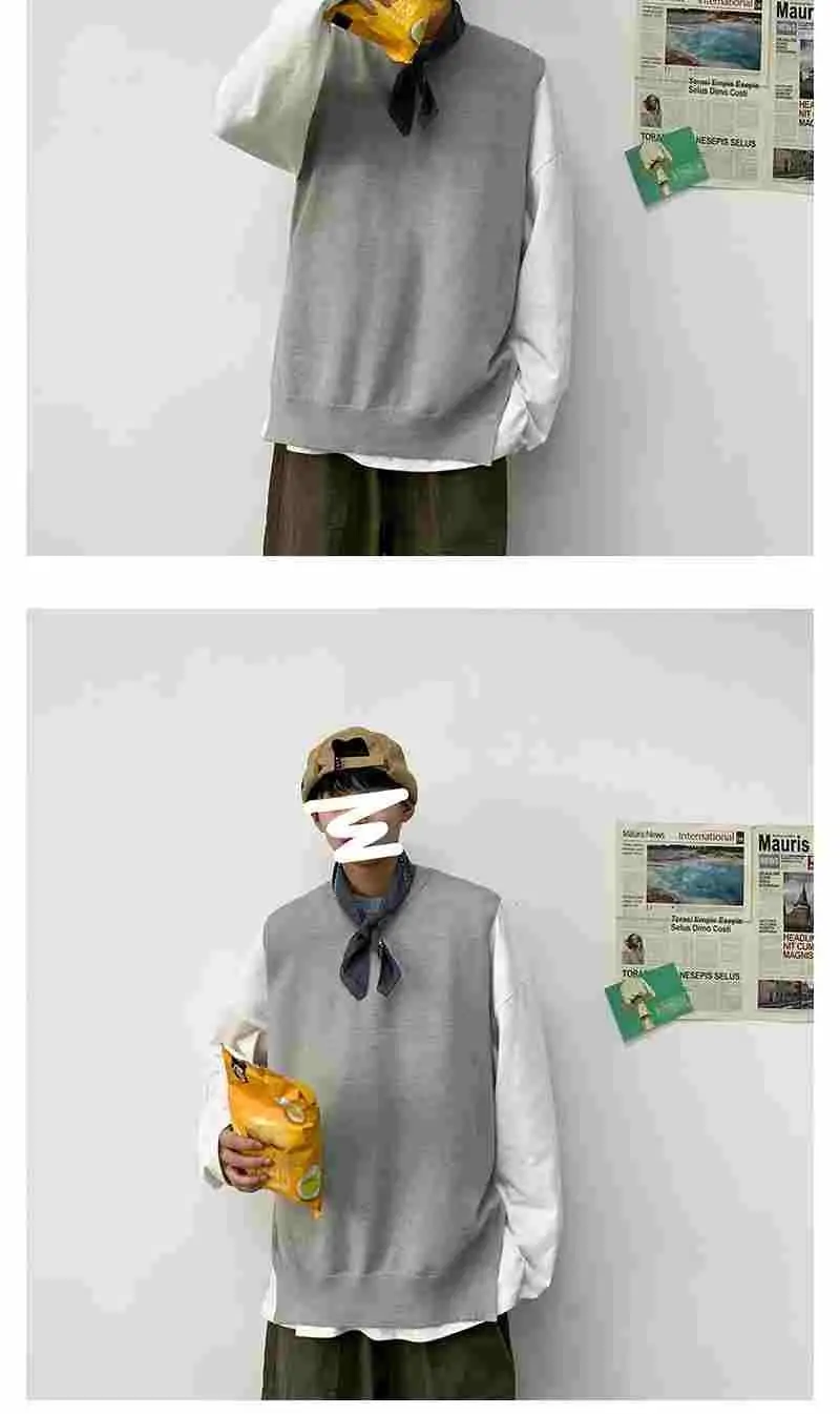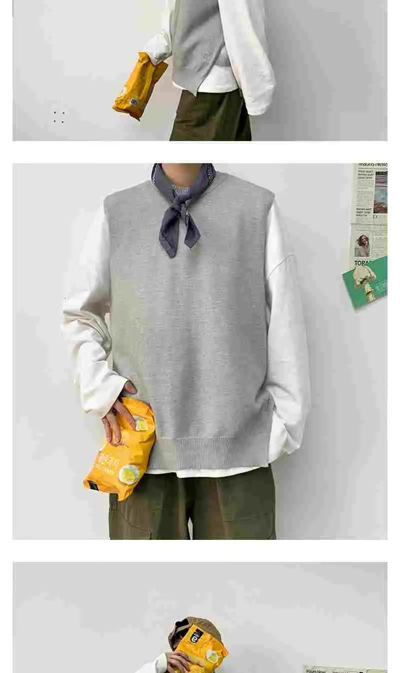 Мужской жилет весна-осень 2021 корейский вязаный свитер с круглым вырезом в гонконгском стиле свободный Однотонный свитер без рукавов