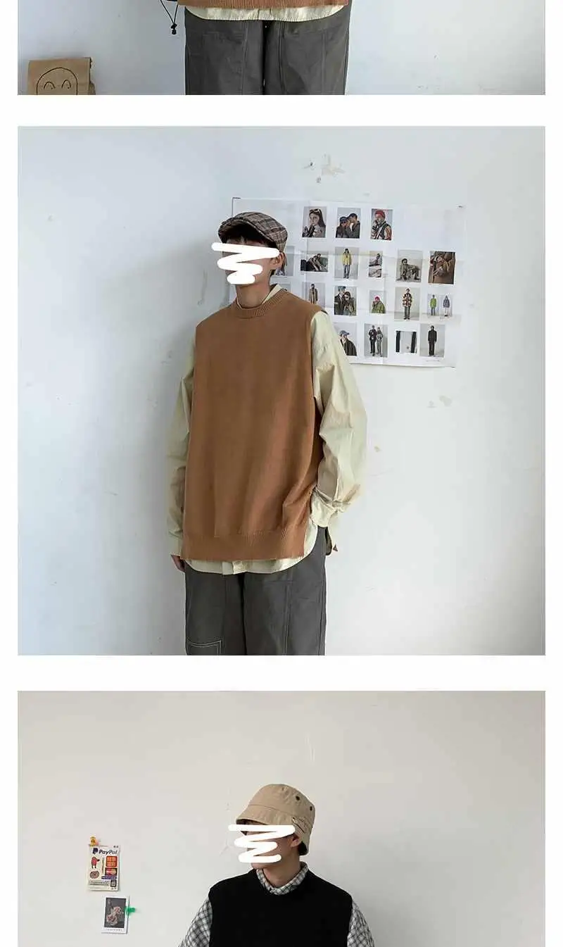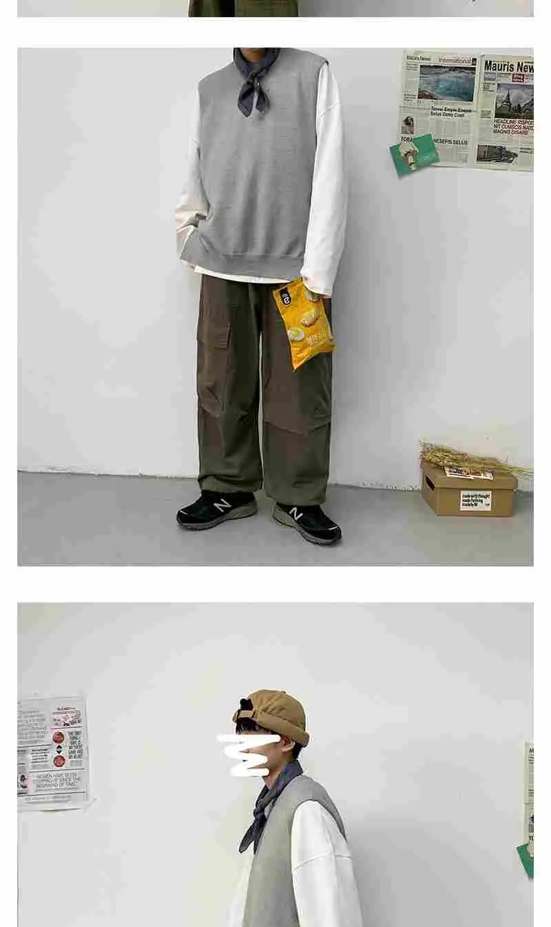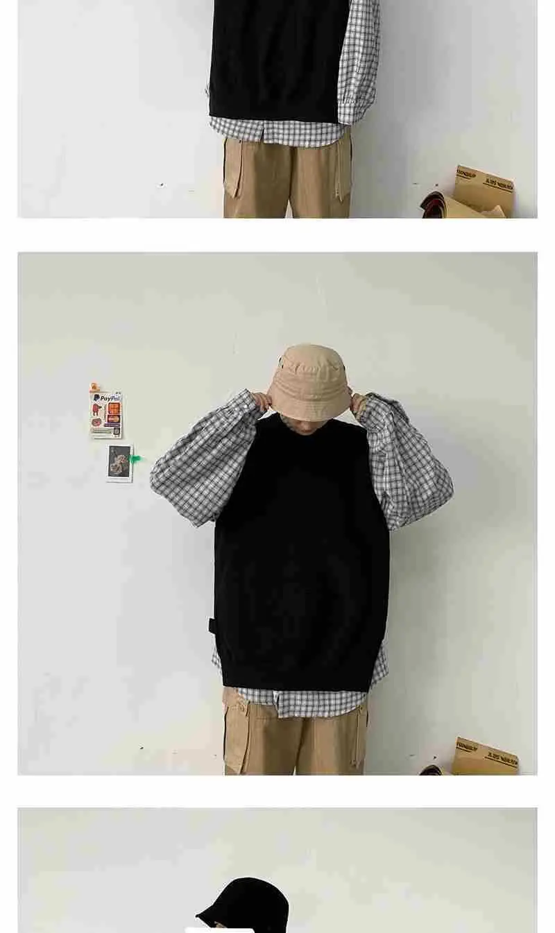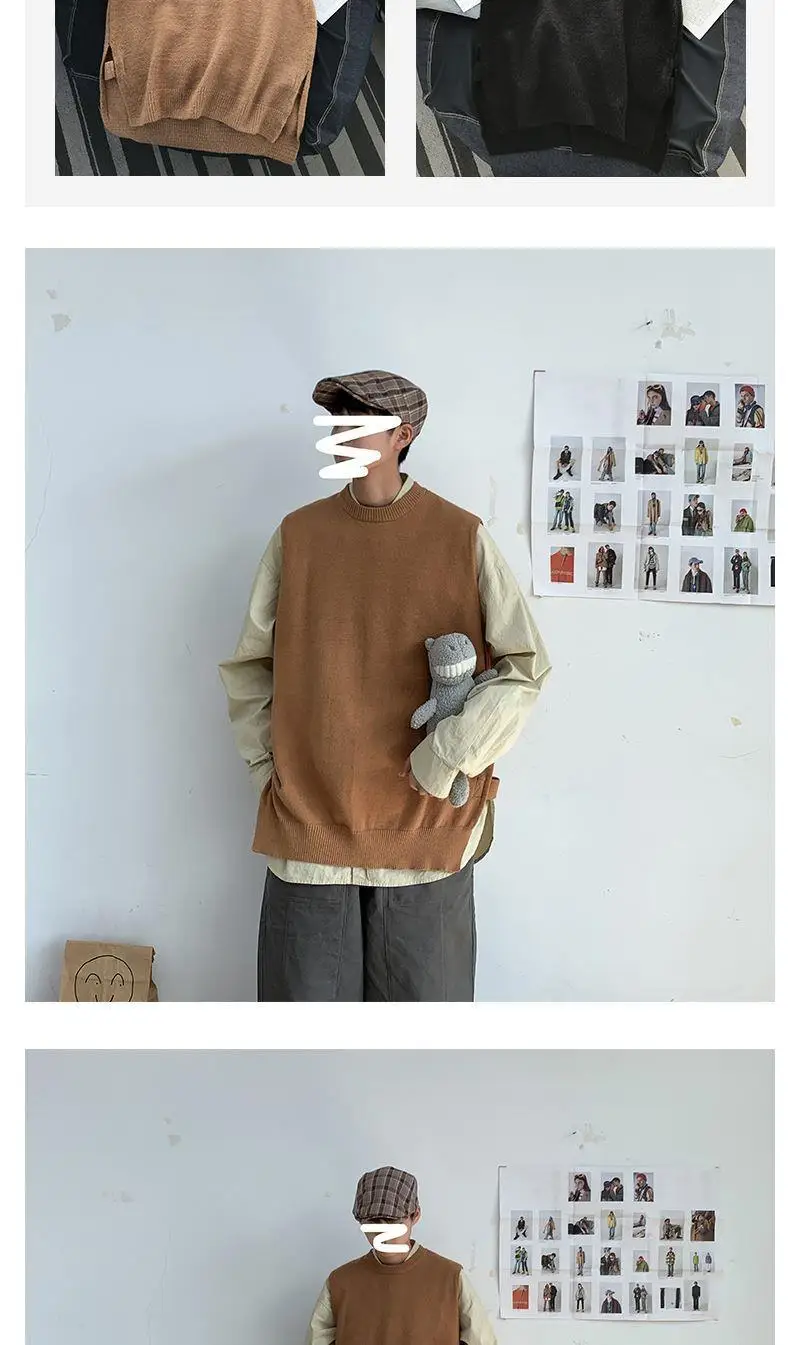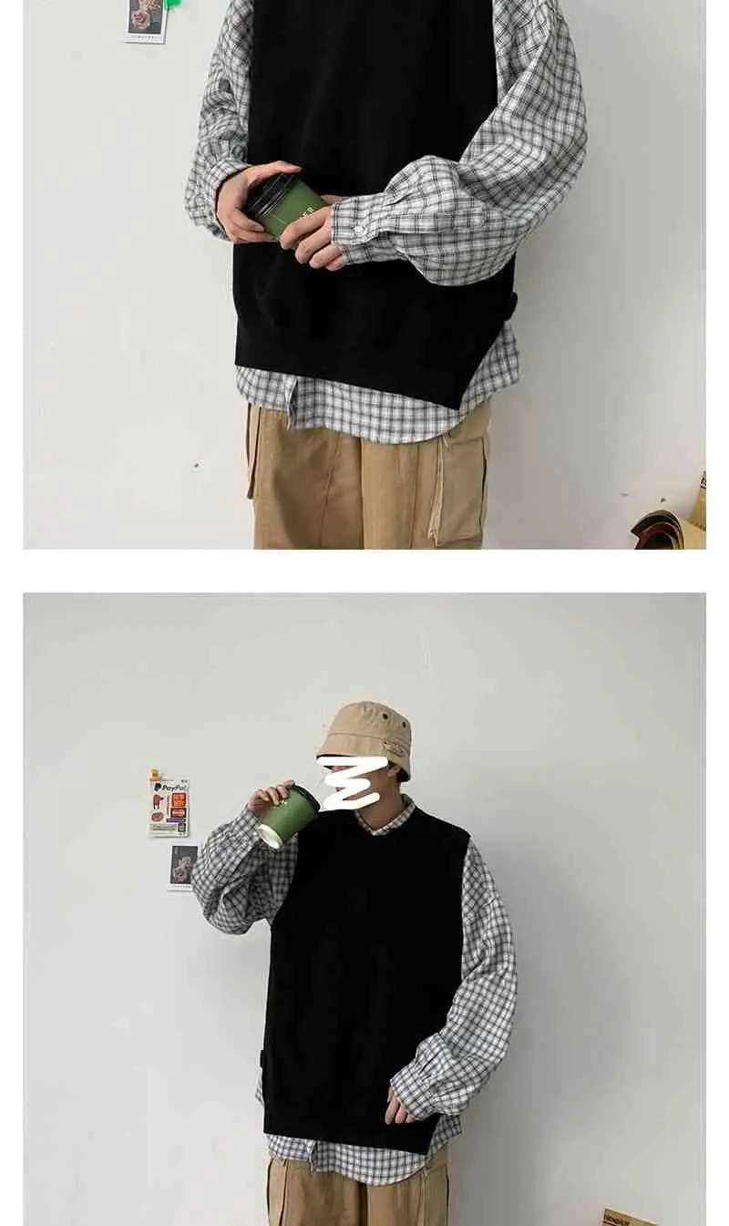 Мужской жилет весна-осень 2021 корейский вязаный свитер с круглым вырезом в гонконгском стиле свободный Однотонный свитер без рукавов