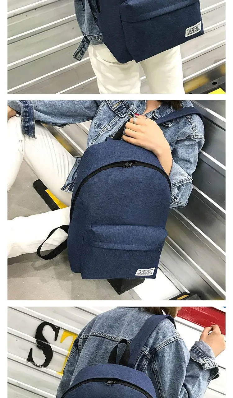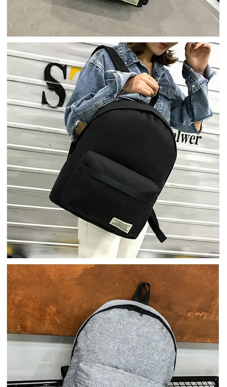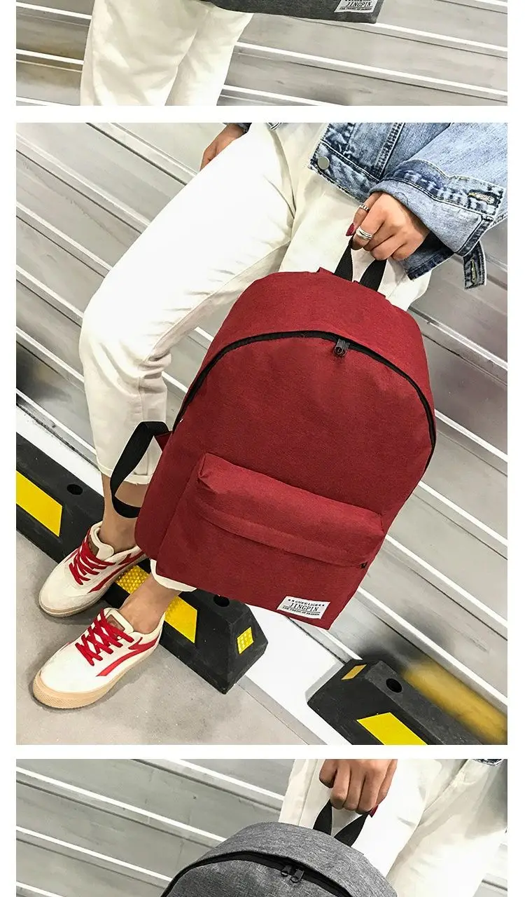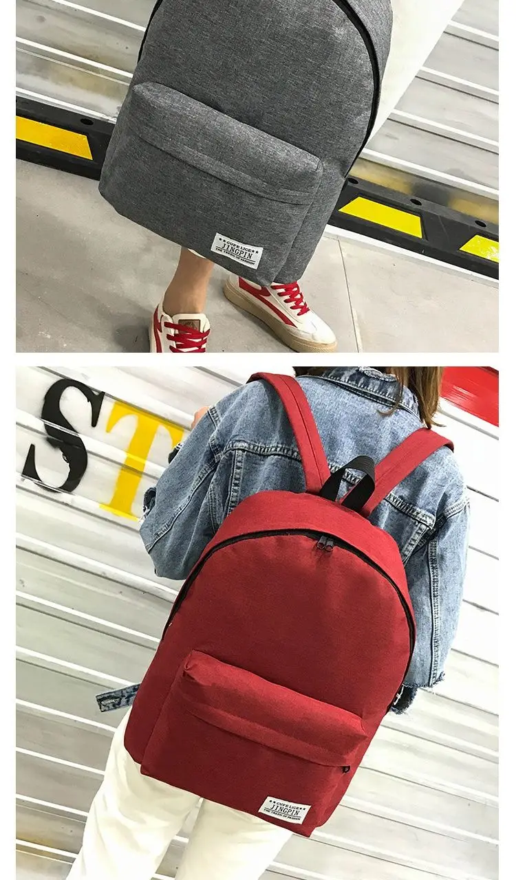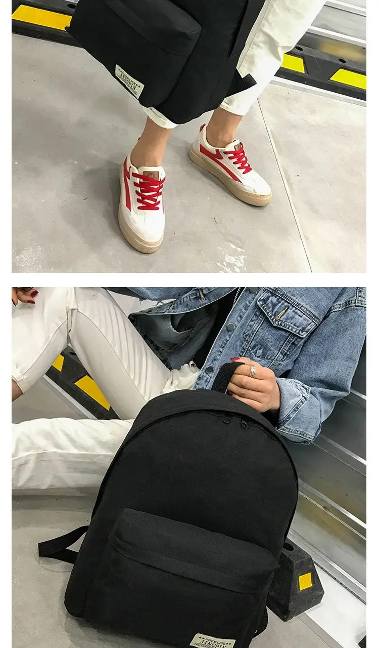 Однотонный холщовый рюкзак для женщин средней школы, маленький свеж...