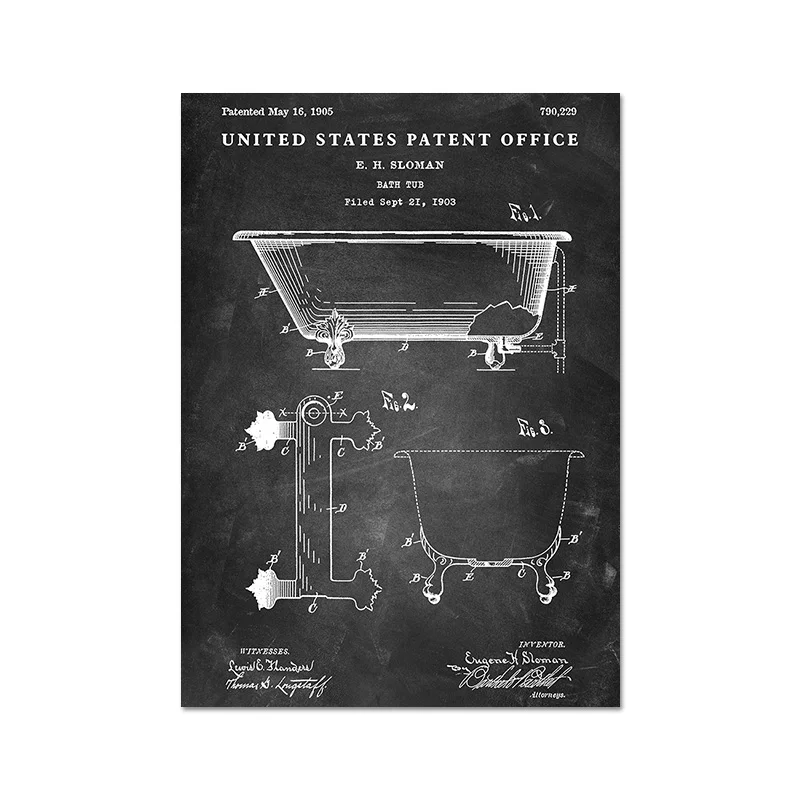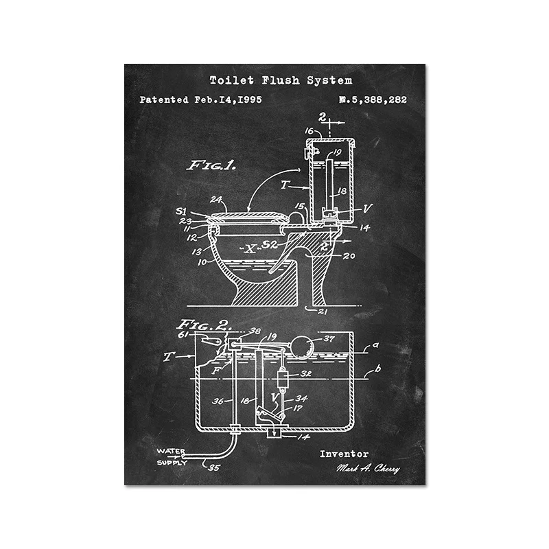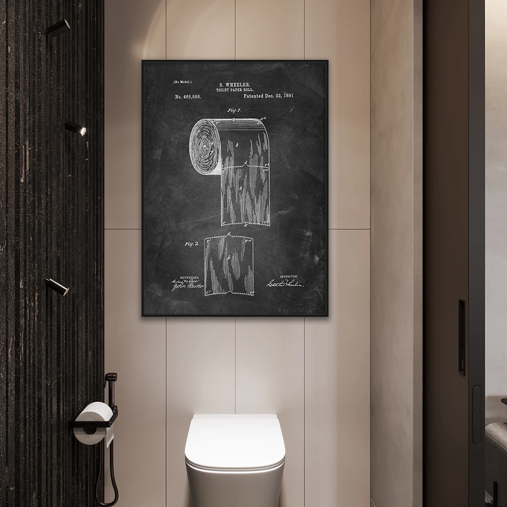 Keyword1Vintage Blackboard Poster Bathroom Mirror Toothbrush Toilet Seat Patent Wall Art Prints Modern Home Decoration Canvas Painting