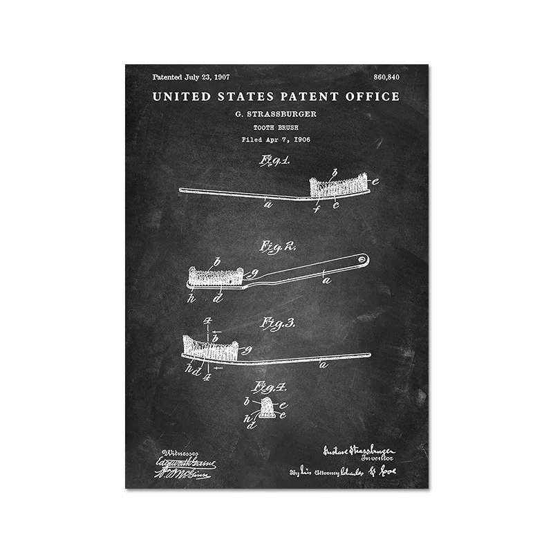 Винтажная школьная доска плакат ванная комната зеркало зубная щетка сиденье для унитаза патент настенные художественные принты Современное украшение дома Картина на холсте
