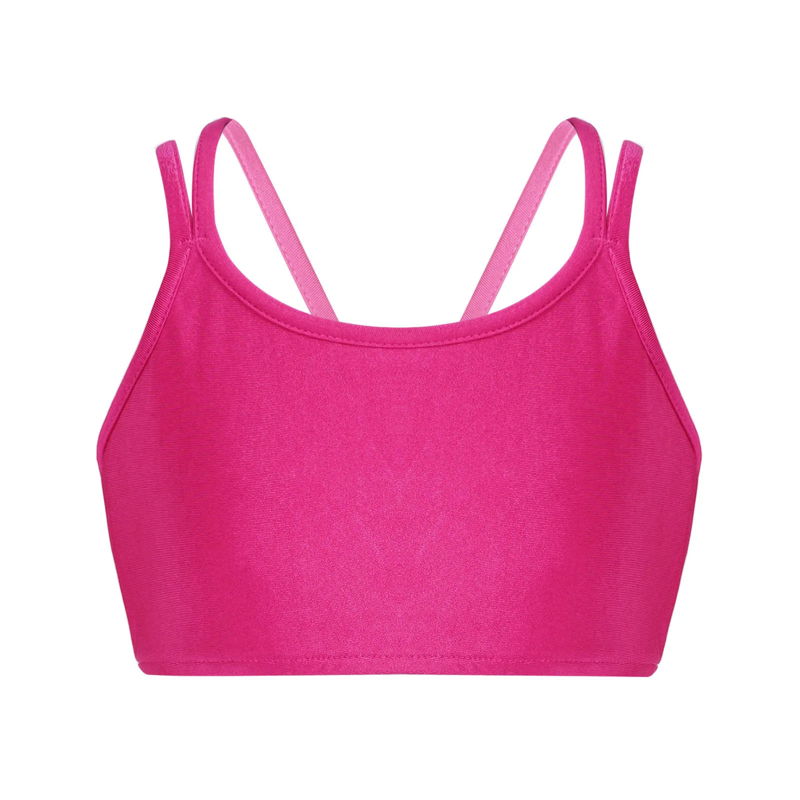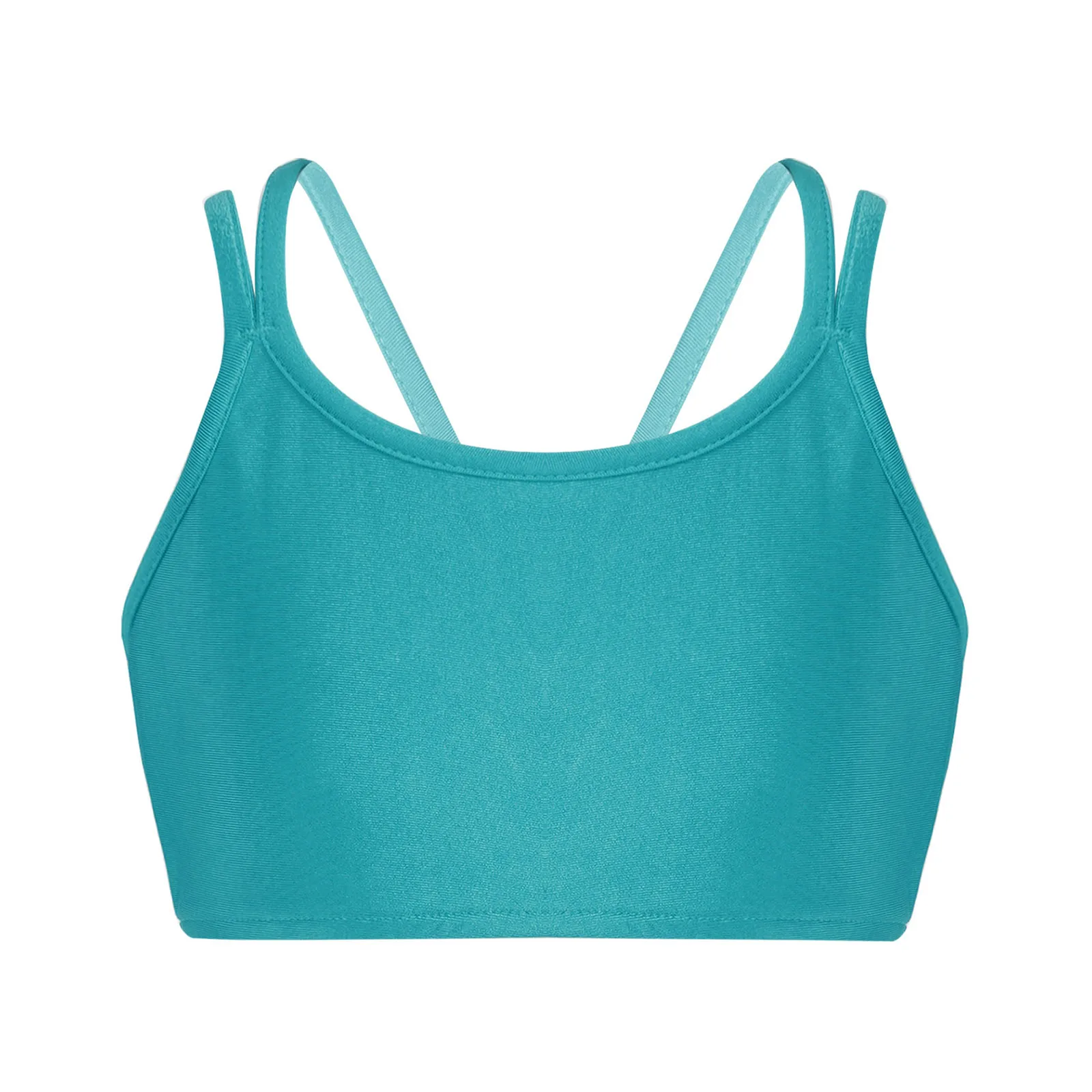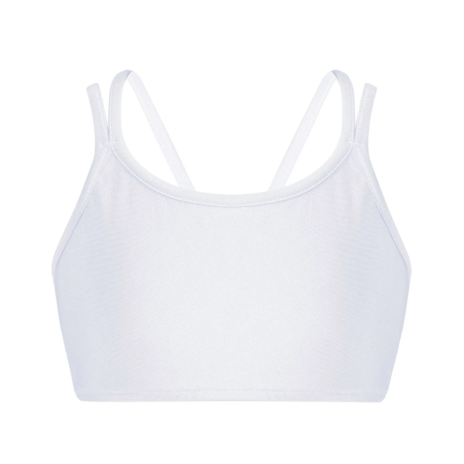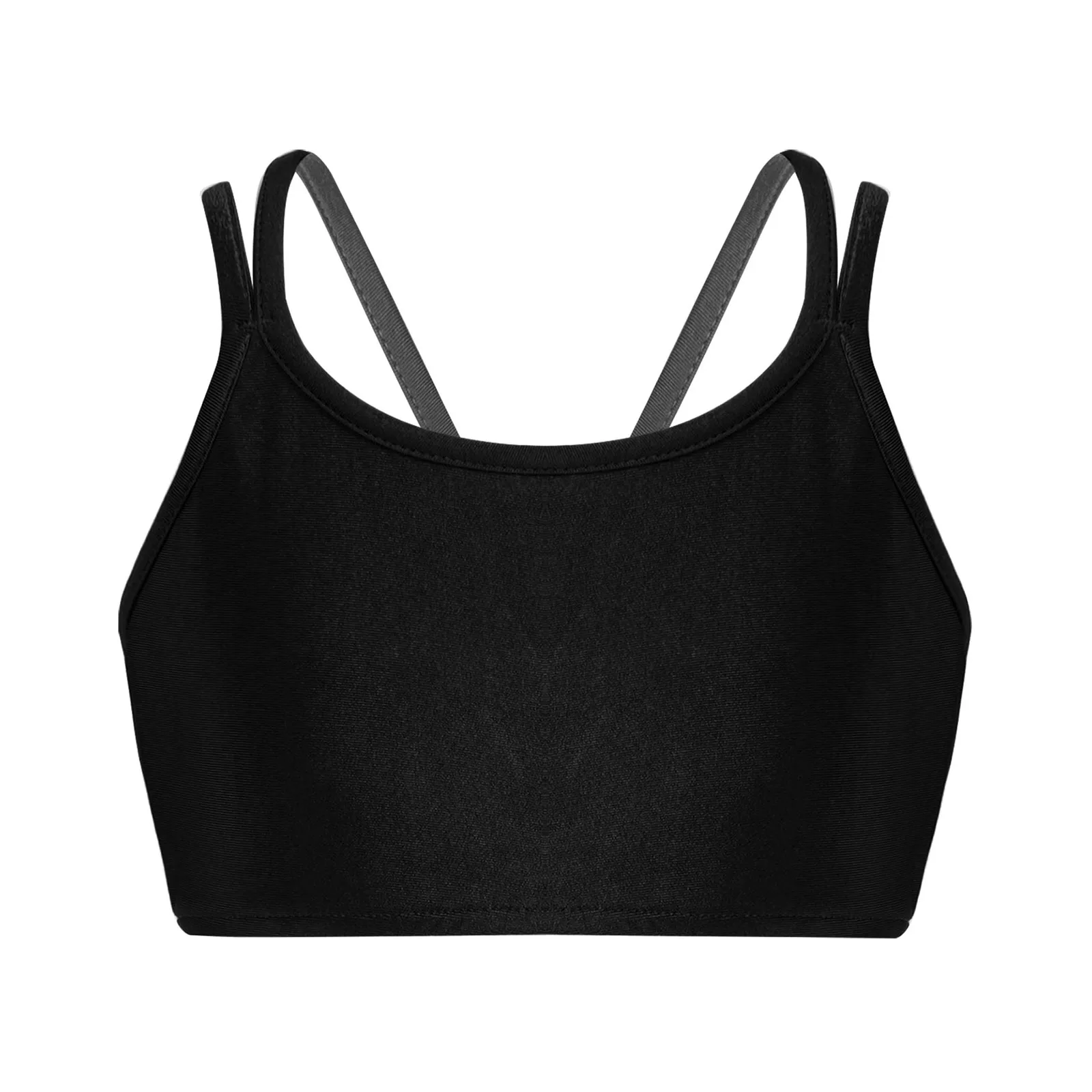 Летняя безрукавка для девочек, топ для тренировок и бега, танцевальный топ с круглым вырезом, однотонные укороченные майки на лямках, спортивная одежда