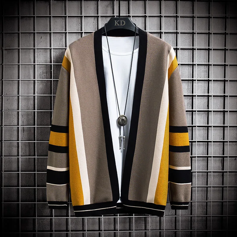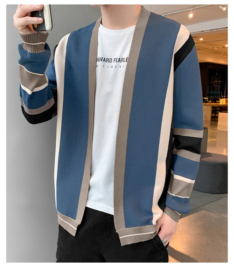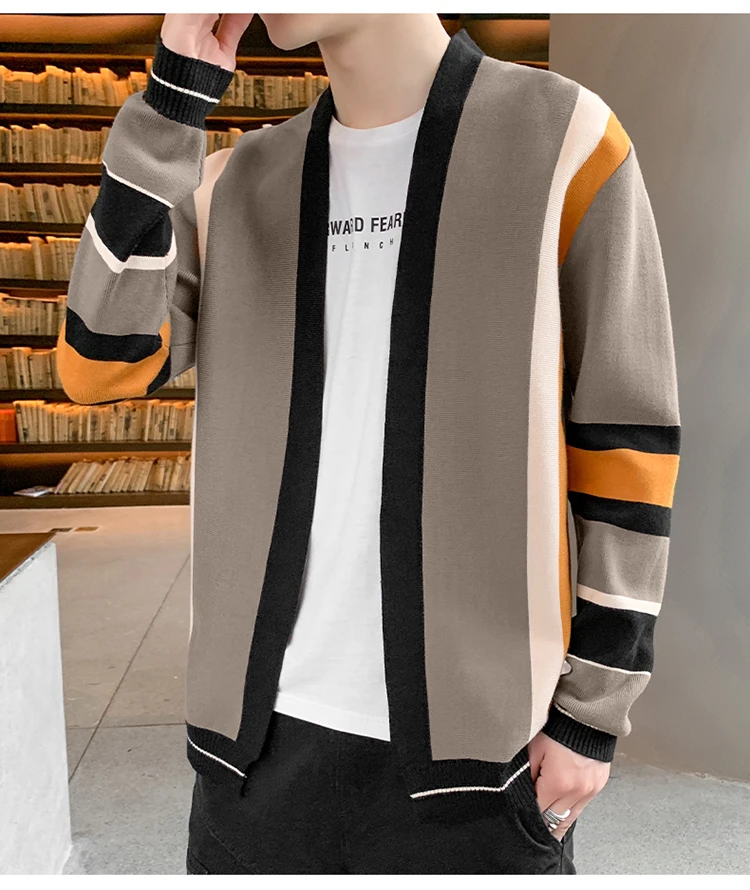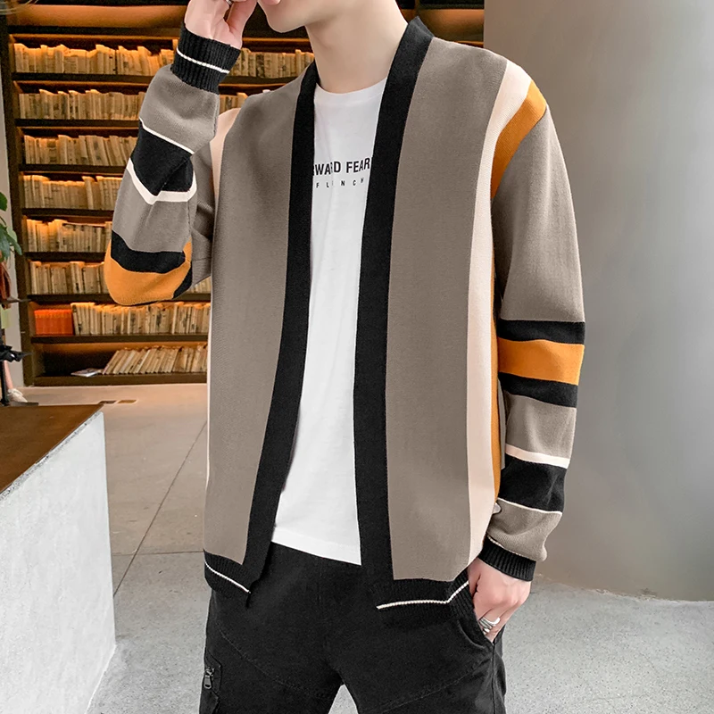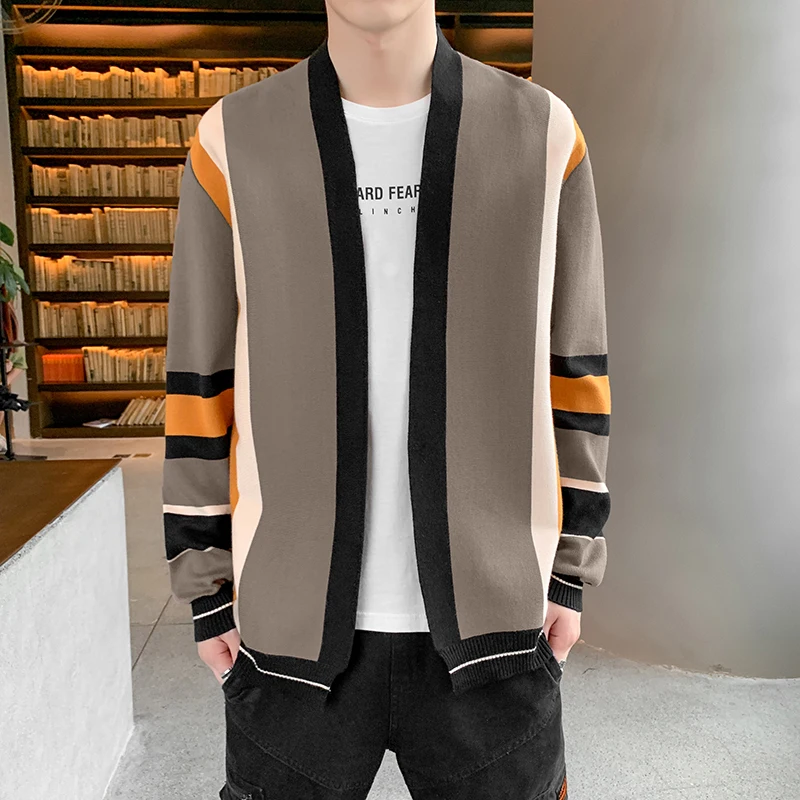 Свитер Onnestun, Мужская одежда, новинка весны-осени, вязаный кардиган с длинным рукавом и цветным швом, мужской свитер в стиле Харадзюку, повседневные топы