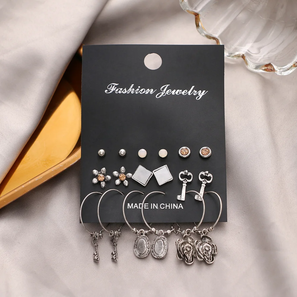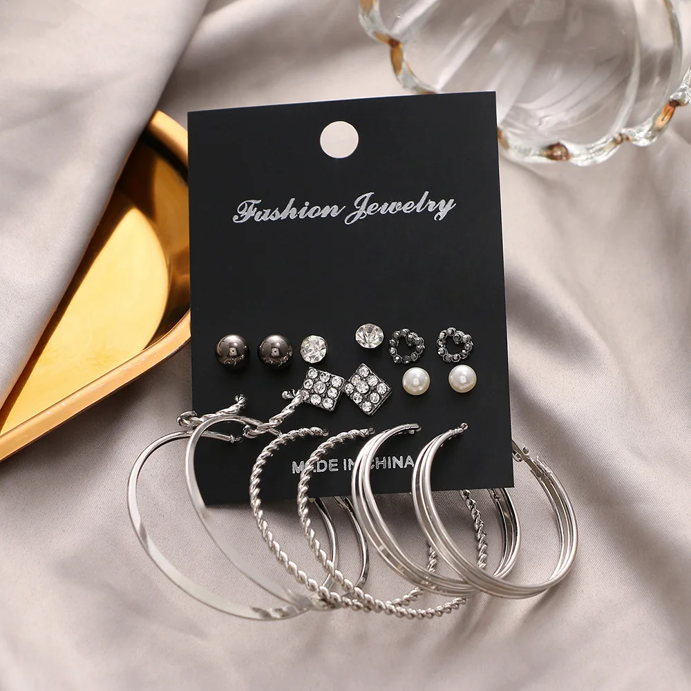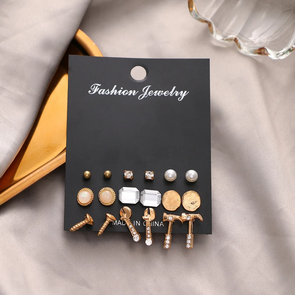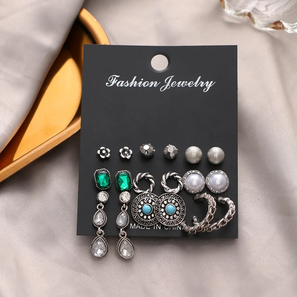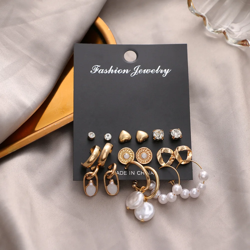 Серьги-гвоздики богемным жемчугом и кристаллами для женщин, серьги-кольца, серьги 2021 тренд, необычные серьги, набор, модные украшения в готическом стиле сережки серьги висячие бижутерия сережки необычные