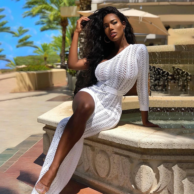 Женское Повседневное платье, летнее элегантное облегающее платье с поясом, женское сексуальное платье без бретелек с высоким разрезом, праздничное уличное платье