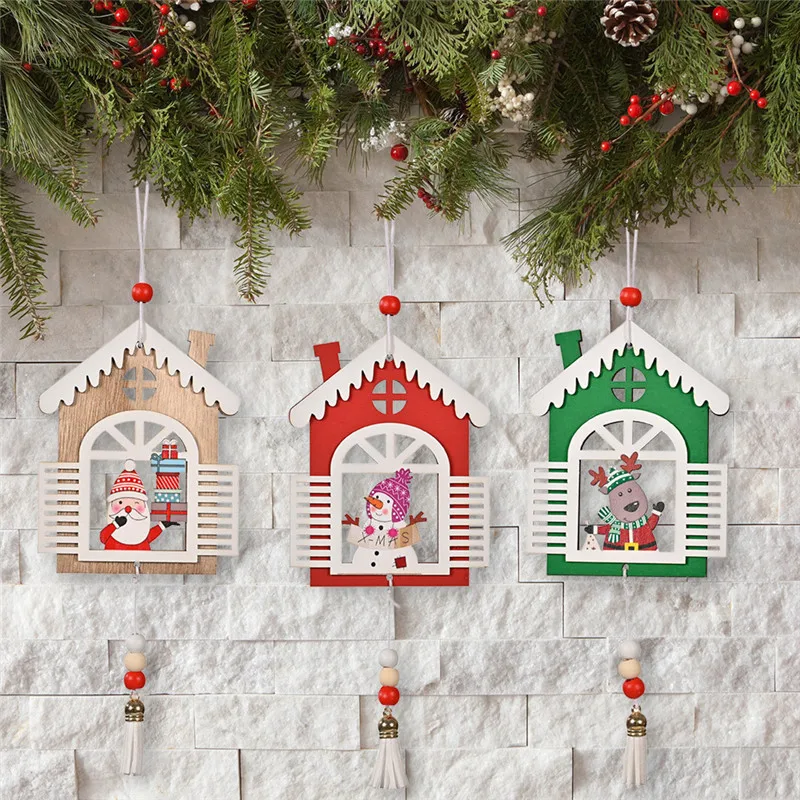 Рождественские украшения, деревянный маленький дом, подвеска с кист...