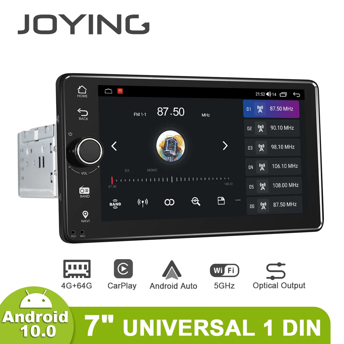 Joying Android автомобильное радио, стерео, центральное мультимедийное устройство 1 Din, 7 дюймов, универсальное головное устройство, радио, беспроводной Carplay, новый пользовательский интерфейс, пользовательский интерфейс