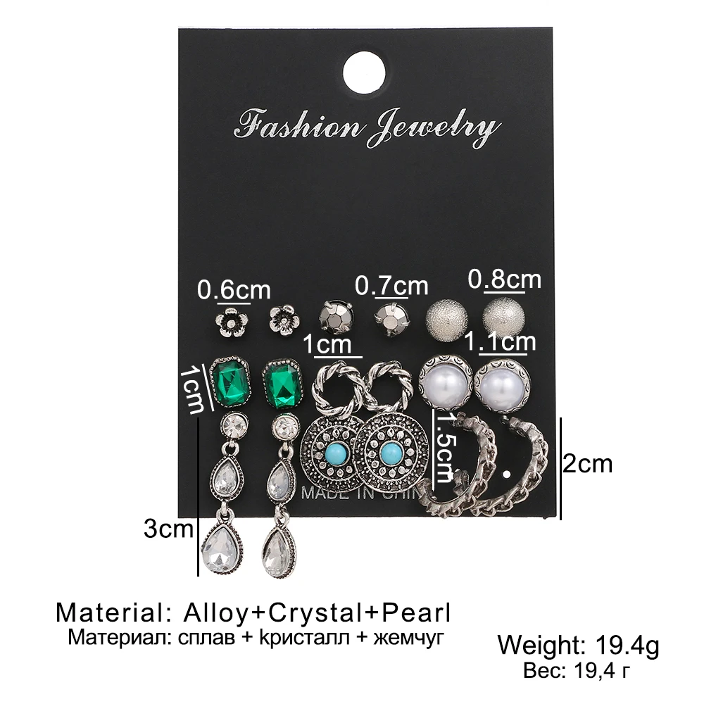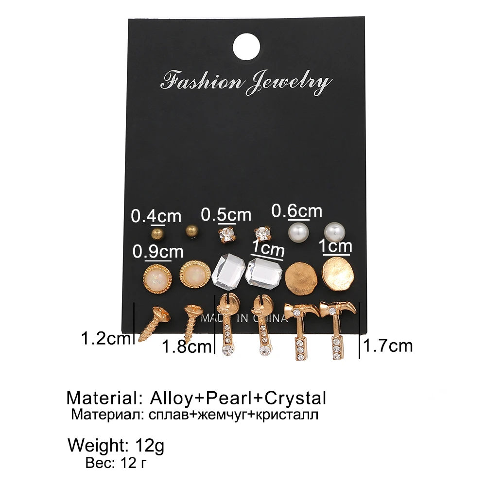 Женские серьги с жемчугом FNIO 12 парыкомпл., серьги-гвоздики для ж...