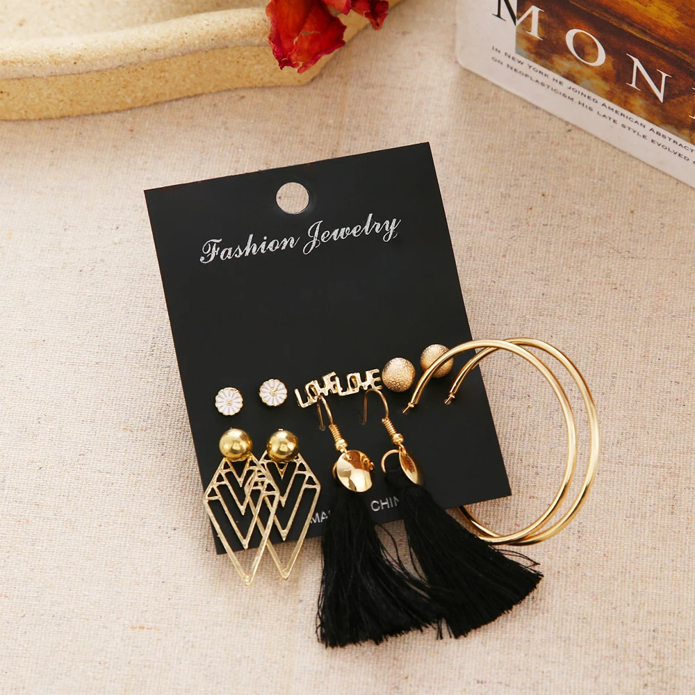 Женский набор серег в стиле ретро, корейские серьги-гвоздики с геом...