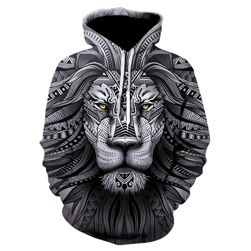 Мужская толстовка с капюшоном и принтом в виде льва, с 3d рисунком,...