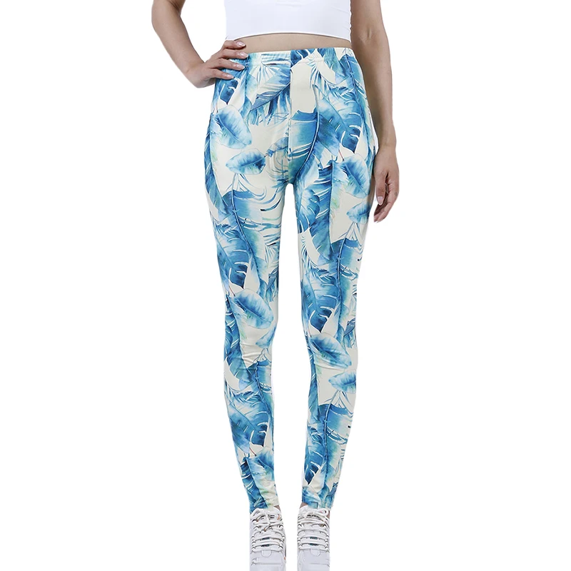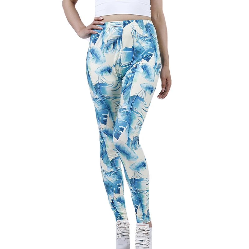 Сексуальные тонкие штаны CUHAKCI, эластичные штаны с высокой талией, женские леггинсы с пуш-ап и принтом зеленых листьев, джеггинсы для спортзала и фитнеса