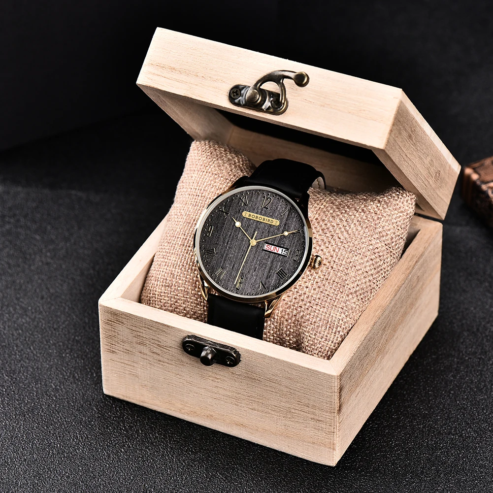 Часы наручные BOBO BIRD мужские с деревянным ремешком, модные японские кварцевые с браслетом из натуральной кожи в стиле ретро