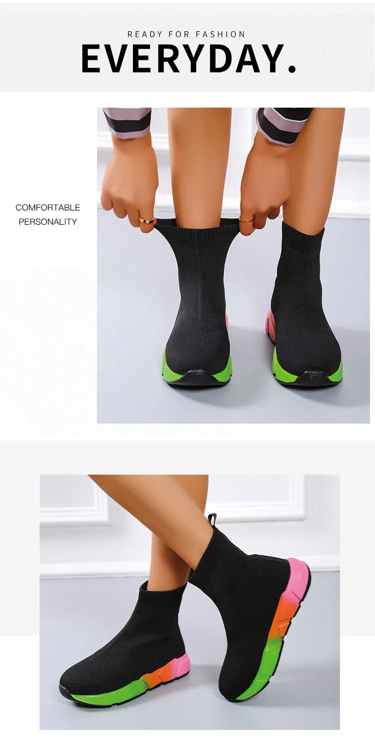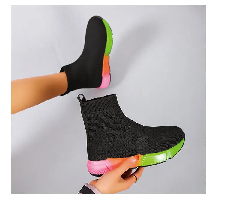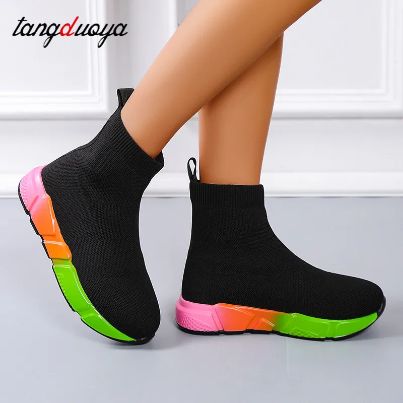 Женские кроссовки-носки, уличная массивная спортивная обувь, разноцветная повседневная женская обувь для бега, женские кроссовки на высокой платформе