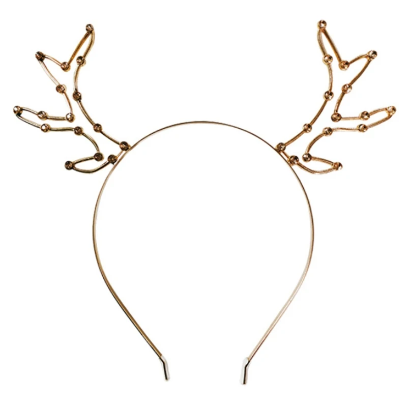 Повязка на голову с хрустальными кошачьими ушками, повязка для волос с оленями, ободок для волос из сплава, реквизит на Хэллоуин и Рождество, тематический костюм