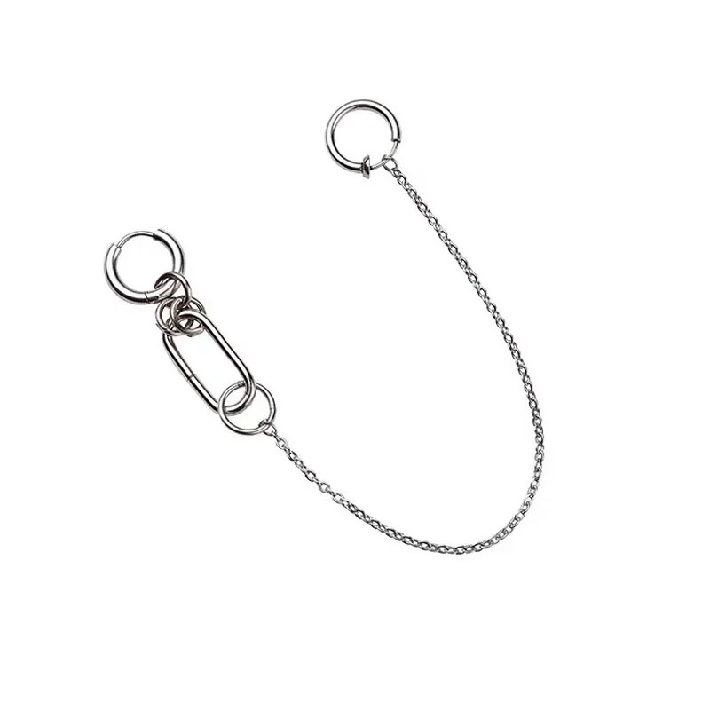 Стильные индивидуальные Искусственные серьги в стиле панк, кольцо для губ с длинными цепочками, модные серьги для пирсинга, зажим для ушей, украшения для тела