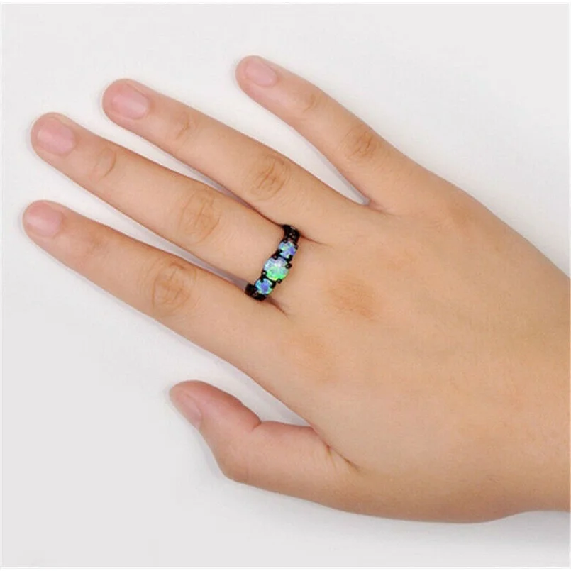 Винтажное обручальное кольцо с голубым мерцанием и черным золотом, размер 6-10