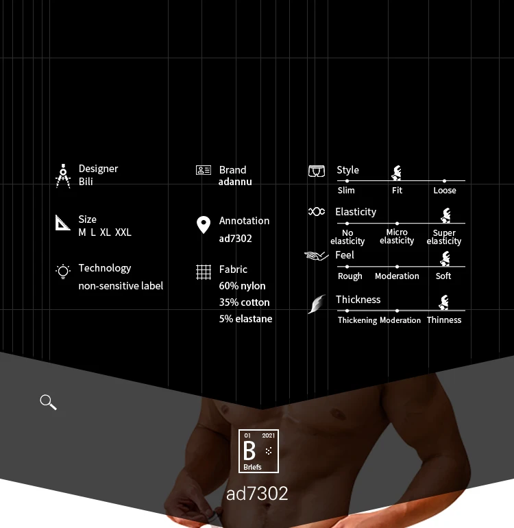 Трусы мужские, нейлон, с заниженной талией, бандаж, джоки, AD7302