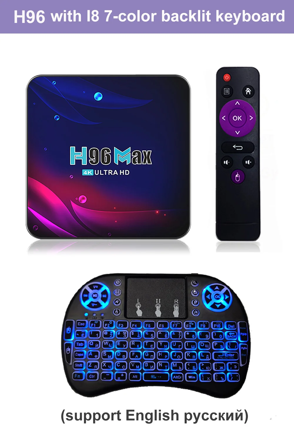 * Процессор: RK3318 четырехъядерный 64 бит Cortex-A53* GPU: Penta-Core Mali-450 до 750 МГц +* O.S: Android 11 новейшая Android телеприставка, более стабильная, безопасная и более Энергоэффективная* Память: RAM 2G/4G ROM 16G/32G/64G* Беспроводной: 2,4G и 5,8G Wifi* USB: 1 Высокоскоростной USB 3,0, 1 USB 2,0* Поддержка Bluetooth: BT4.0* LAN Ethernet:10/100 м Стандартный RJ-45* HDMI-Совместимость: HDMI 2.0a до 4K @ 60fps* 3D: жесткое 3D Графическое ускорение* Поддержка формата декодера:4K VP9 видео декодер, H.265/H.264 видео декодер1080P другие декодеры видео (VC-1, MPEG-1/2/4, VP6/8)* Поддержка медиаформатаAvi/Ts/Vob/Mkv/Mov/ISO/wmv/asf/flv/dat/mpg/mpeg* Поддержка музыкального форматаMP3/WMA/AAC/WAV/OGG/DDP/HD/FLAC/APE* Поддержка формата фотоHD JPEG/BMP/GIF/PNG/TIFF* Мышь/Клавиатура: Поддержка Мышь и клавиатуры через USB; Поддержка 2,4 ГГц беспроводной Мышь и клавиатура через 2,4 ГГц USB донгл* Язык: английский, русский, французский, немецкий, испанский, португальский, итальянский и т. Д.* Есть три варианта коробки H96 MAX V11:2 ГБ 16 ГБ Android 11 4k @ 60 Гц 2,4G и 5,8G Wifi4 ГБ 32 ГБ Android 11 4k @ 60 Гц 2,4G и 5,8G Wifi4 ГБ 64 ГБ Android 11 4k @ 60 Гц 2,4G и 5,8G Wifi