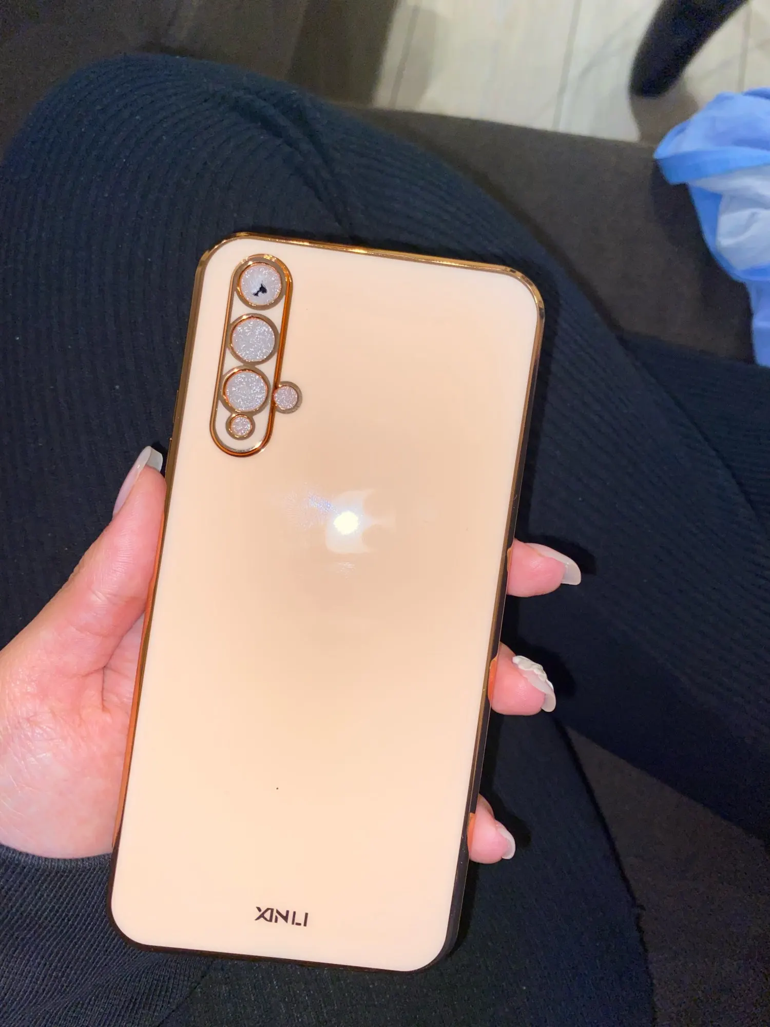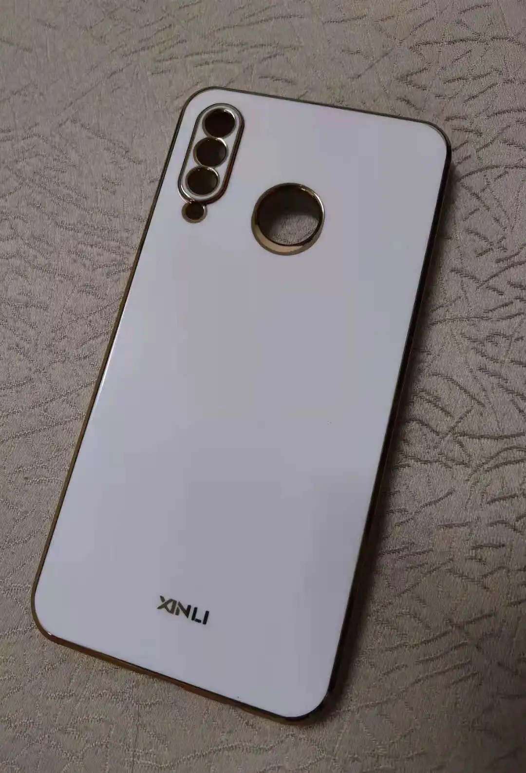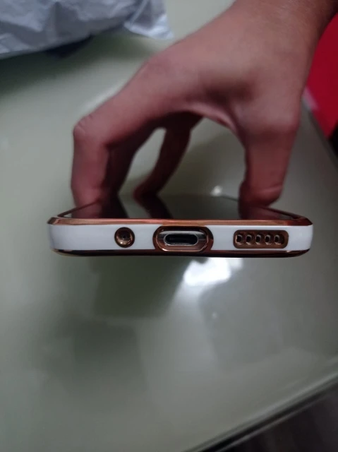 Создается впечатление, что это как стекло на изображении, насколько оно яркое, но это мягкий пластик. Это не белый, как на картинке, это желтоватый. Но это красиво. Я надеюсь, что золотой цвет краев не исчезнет.