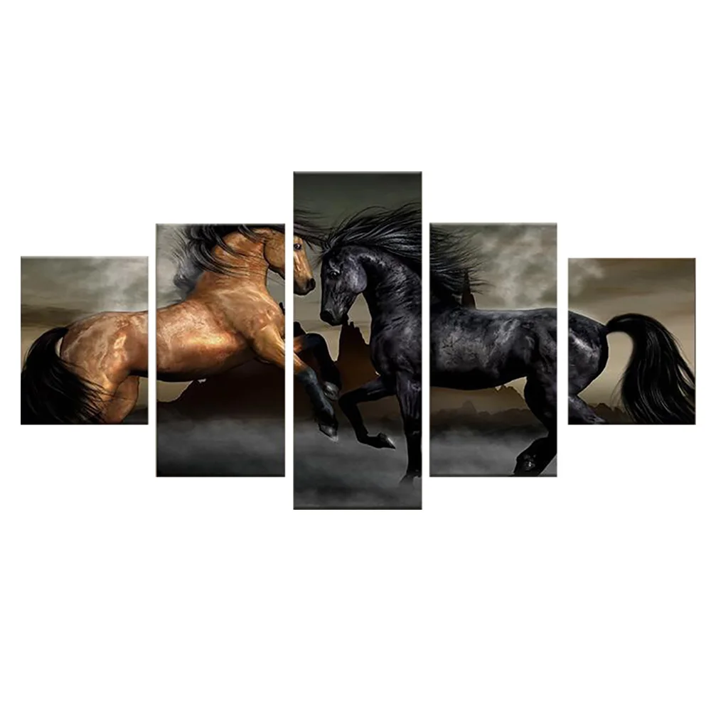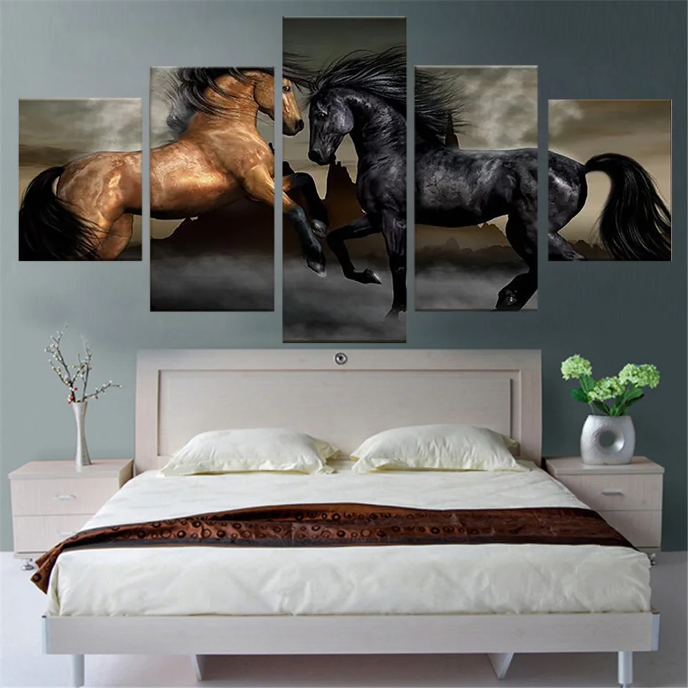 Настенная картина на холсте, Постер с изображением животных, двух лошадей, бегущих друг к другу, Современная декоративная картина для гостиной, 5 шт.